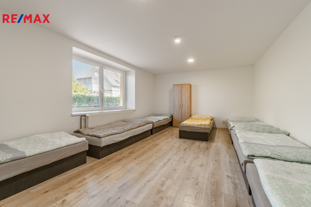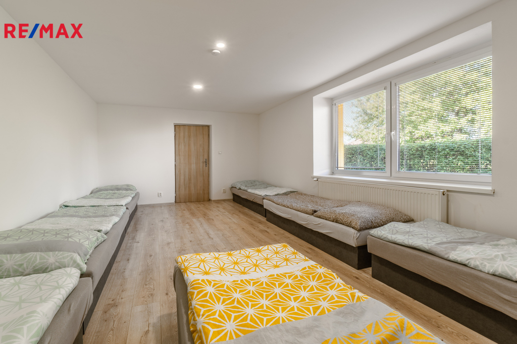 V exkluzivním zastoupení majitelů nabízím nově zrekonstruovaný penzion/ubytovnu v obci Dětřichov u Frýdlantu, který nabízí 40 lůžek v deseti komfortních 3–6lůžkových pokojích, je zkolaudován jako ubytovací zařízení a připraven ihned přijímat hosty bez jakýchkoli dodatečných investic. Celková výměra pozemku činí 1335 m2. Kompletní modernizace objektu zahrnula novou fasádu, střechu, oplocení, interiéry i parkovací plochy. Dispozičně dům rozděluje pět pokojů, kuchyň a celé sociální zázemí v přízemí, zatímco horní patro nabízí dalších pět pokojů, kuchyň, čtyři sprchy a čtyři WC; celkově jsou k dispozici tři plně vybavené kuchyně, devět sprchových koutů a deset toalet, takže provoz zůstává plynulý i při plné obsazenosti. Hosté oceňují vysokorychlostní Wi-Fi v celém objektu, dvě velkoplošné televize, dvě pračky se sušičkou a veškeré kuchyňské spotřebiče, přičemž celý interiér je nekuřácký; kuřákům slouží vyhrazené místo venku s dohledem na čistotu prostředí. Rozlehlá oplocená zahrada nabízí příjemné posezení na terase, prostor pro grilování, bezpečné parkování několika vozů a potenciál vybudovat altán, wellness zónu či dětské hřiště; navíc je k dispozici sklep a samostatná bouda na kola či nářadí. Při dlouhodobých pobytech startují ceny na 350 Kč za lůžko a noc a při plné kapacitě může objekt generovat až 420 000 Kč měsíčního obratu, což zajišťuje atraktivní návratnost vloženého kapitálu. Stavba je připojena na obecní vodovod, možné je využití studny pro závlahu zahrady, dále je připojena na elektřinu, odpad je řešen zrekonstruovanou jímkou o objemu 15-20 m3 s novou hydroizolací, topení je řešeno kotlem na uhlí rozvedený do radiátorů po celé budově a ohřev teplé vody je pomocí 3 elektrických bojlerů o objemu 3x 200l. Obec Dětřichov leží 6 km od Frýdlantu a 20 km od Liberce, autobusová linka dorazí do Frýdlantu za 8 minut a zastávka je 300 m od penzionu; obec se 741 obyvateli má obchod, restauraci a přímé napojení na silnici I/13 směrem k Jizerským horám, jejichž cyklo-turistické trasy zajišťují celoroční návštěvnost. Flexibilní dispozice umožňuje penzion provozovat pro krátkodobé i dlouhodobé pobyty, firemní školení, sociální bydlení s možností dotací nebo jej převést na apartmánový dům, takže obchodní model lze snadno přizpůsobit aktuální poptávce. Rád vám poskytnu více informací a domluvím osobní prohlídku, kde poznáte tuto zajímavou nemovitost – těším se na brzké setkání. *** doporučuji shlédnout videoprohlídku nemovitosti ***