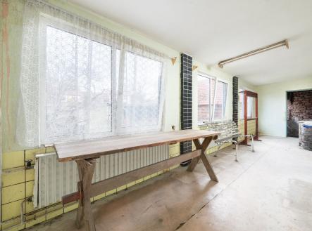 Ve výhradním zastoupení majitele Vám nabízíme k prodeji přízemní rodinný dům o dispozici 2+1 se zahradou v obci Diváky, okres Břeclav. Nemovitost je určena ke kompletní rekonstrukci, která zahrnuje střechu, rozvody inženýrských sítí, podlahy a okna, případně může být demolována a nahrazena novostavbou. V tuto chvíli je již vydané stavební povolení na rekonstrukci a k dispozici je vypracovaný projekt. Po dohodě s majitelem je možné zajistit realizaci hrubé stavby dle schválené projektové dokumentace. Celková plocha pozemku činí 612 m², z toho zastavěná plocha je 218 m². Dvůr a zahrada mají dohromady 394 m². Uliční šíře domu je 19,6 m. Dům má zavedenou přípojku elektřiny, přípojky vody a plynu jsou přivedeny k hranici pozemku. Napojení na dešťovou kanalizaci je možné v chodníku před domem. Na pozemku se nachází také vlastní studna. Parkování osobního nebo nákladního vozu je možné v průjezdu nebo přímo ve dvoře, přístupném z ulice přes dřevěná vrata o rozměrech 2,84 × 2,91 m. K hlavnímu vchodu domu vede malá oplocená předzahrádka. Po vstupu do chodby se vpravo nachází pokoj o výměře 20,6 m², vlevo kuchyně o velikosti 17,1 m². Z kuchyně je přístup do koupelny (3,66 m²), případně lze pokračovat do ložnice (20,6 m²). Chodbou projdete na prostornou prosklenou verandu (23 m²) s výhledem do dvora. Z verandy vedou dveře vpravo do průjezdu, vlevo pak do druhého, zastavěného křídla domu. To tvoří tři technické místnosti propojené prosklenou chodbou: první (12,2 m²), pravděpodobně využívaná ke zpracování masa, druhá (7,4 m²) s původním plynovým kotlem a třetí (13 m²) sloužila jako sklad. Na konci chodby se nachází samostatné WC (1,5 m²). Odtud se dále prochází na dvůr, kde se nachází chlév (12,6 m²) a prostorná zastřešená kůlna s udírnou. Obec Diváky leží v malebném údolí obklopeném kopci a listnatými lesy Ždánického lesa. Svahy okolních kopců pokrývají pole a vinice, které společně vytvářejí klidné a atraktivní prostředí. Obec je známa také jako bydliště spisovatelských bratří Mrštíků. Obyvatelé mají k dispozici tzv. víceúčelovou budovu s poštou, ordinací praktického lékaře, kadeřnictvím, hasičskou zbrojnicí a základní školou. Obec je plynofikována a většina domácností je napojena na veřejný vodovod i kanalizaci. Kulturní a společenský život zajišťuje obecní úřad ve spolupráci s místními spolky. K dispozici je také veřejná knihovna s připojením k internetu. V obci žije přibližně 511 obyvatel. Diváky se nacházejí 30 minut jízdy od Brna (cca 35 km) a pouhých 9 km od nájezdu na dálnici D2 v Hustopečích.