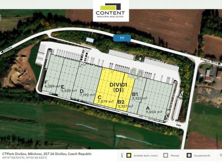 Pronájem skladu, výrobních prostor 3327 m² Divišov. V zastoupení majitele a bez provize nabízíme reprezentativní komerční prostory pro skladování, logistiku, výrobu a velkoobchodní provoz o velikosti 14.000 m², situovaných v moderním komerčním parku u exitu č. 41, dálnice D1: - v areálu ihned k dispozici prostory 3327 m² až 10406 m², - vstupy v úrovni vozovky, hydraulické rampy, - vysoko-zátěžové, bezprašné podlahy s nosností minimálně 5 t/m², - výška stropu 10 m, - kancelářské a sociální zázemí dle potřeby, - příjezd pro TIR samozřejmostí a dostatečné manipulační i parkovací plochy, - další úpravy možné, dle přání a potřeb konkrétního klienta. Cena nájmu je individuální, dle konkrétních požadavků klienta. Pro více informací nás kontaktujte, rádi Vám zajistíme prohlídku nemovitosti.