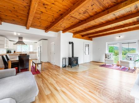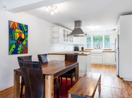 Prodej stylového nízkoenergetického rodinného domu se vzrostlou zahradou, bazénem, jezírkem a zahradním domkem v malebné obci Divišov – Radonice. Divišov je městys nedaleko Benešova s veškerou občanskou vybaveností a skvělou dostupností po dálnici D1 – z Prahy jste tu do 30 minut. Pokud hledáte dům v klidném prostředí přírody a zároveň s rychlým spojením do města, tahle nabídka je pro vás ideální. Dispozice 4+kk: Dům má dvě podlaží. V přízemí najdete prostorný obývací pokoj se západní orientací, krbovými kamny a přímým vstupem do zahrady, velkorysou plně vybavenou kuchyni v přírodním designu a koupelnu s vanou, saunou a toaletou. Samozřejmostí je i technické zázemí. V patře jsou tři neprůchozí pokoje – hlavní pokoj (aktuálně využívaný jako pracovna, knihovna a pokoj pro hosty), dále ložnice a dětský pokoj. V prostoru u schodiště je navíc šikovně řešený pracovní kout. Zahrada a zázemí: Vzrostlá zahrada poskytuje soukromí, krásné výhledy a dostatek prostoru pro odpočinek i volnočasové aktivity. Na terasu navazuje jezírko napájené dešťovou vodou, bazén s hloubkou 1,9 m a vlastní pískovou filtrací a zahradní domek, který slouží k uložení zahradního náčiní. Na pozemku najdete i zákoutí pro grilování, sport či zahradničení včetně vzrostlých ovocných stromů. Technické řešení: Dům je vytápěn tepelným čerpadlem, má vlastní studnu, čističku odpadních vod a případně i septik. Díky tomu se můžete spolehnout na velmi nízké provozní náklady, 1900 Kč/měsíc el. energie. V přízemí je podlahové topení, v patře radiátory. V domě je k dispozici alarm. Lokalita: V Radonicích je autobusová doprava do Divišova, kde najdete kompletní občanskou vybavenost – obchody, restaurace, školu, školku, zdravotní středisko, poštu, lékárnu, knihovnu i koupaliště. Okolí je ideální pro cyklistiku i turistiku, nedaleko se nachází například hrad Český Šternberk či zámek Jemniště. Výhodou je i rychlé napojení na dálnici D1. Energetická náročnost budovy: B