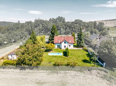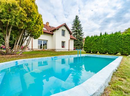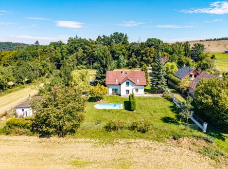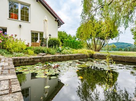 Stylový rodinný dům 4+kk se zahradou, bazénem a jezírkem v Radonicích u Divišova