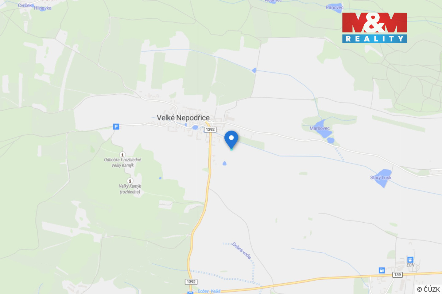 Nabízíme k prodeji stavební pozemek o výměře 999 m², nacházející se v obci Velké Nepodřice, nedaleko Písku. Na hranici pozemku je k dispozici elektrická a vodovodní přípojka. Přístup je zajištěn po asfaltové komunikaci, která je v podílovém vlastnictví. Pozemek se nachází na okraji obce, v klidné lokalitě vhodné pro bydlení. V obci je k dispozici základní sportovní vybavenost a hospoda. Výborná dopravní dostupnost – autobusové spojení směr Písek a Strakonice.
