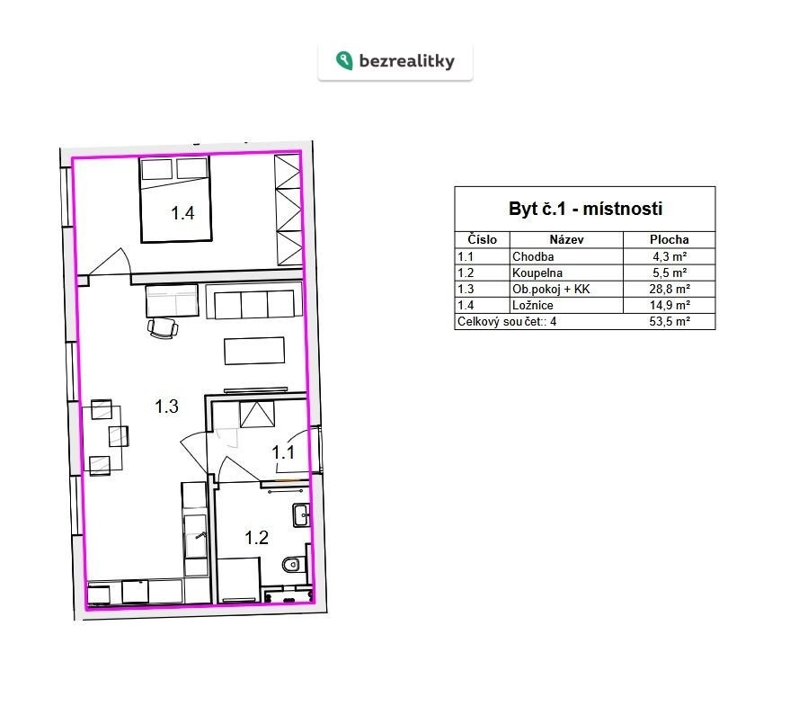 V nově vznikajícím rezidenčním projektu REZIDENCE ZA RŮŽKEM v Dobřanech nabízíme k prodeji zcela bezbariérový byt 2+KK v 1. NP splňující vyšší standardy moderního bydlení. Byt má vlastní vchod ze dvora, kde se nachází parkovací stání. Rezidenční projekt je situován v centru Dobřan, ale v klidné a bezpečné lokalitě, kde je veškerá občanská vybavenost skutečně "za růžkem", ale zároveň jste doslova jen několik kroků od zeleně a okolní přírody. Z Dobřan je výborná dopravní dostupnost do Plzně. Prodej bytu je bez provize realitní kanceláři! Technická vybavenost bytu: Rekuperace (systém řízeného větrání) Podlahové vytápění v celém bytě Venkovní předokenní elektrické žaluzie Parkovací stání v uzavřeném dvoře (odtud vlastní vstup do bytu) 1 sklepní kóje !!Byt se prodává jako zcela nezařízený. Obrazový materiál slouží pouze pro marketingové účely!! Interiér každého bytu si můžete přizpůsobit podle vlastního vkusu. Obklady a sanitu v koupelně i podlahy v celém bytě si volíte dle vlastního výběru u smluvního dodavatele projektu. Základní výběr je zdarma v rámci stanoveného budgetu. Při volbě nadstandardních prvků se hradí rozdíl v ceně. Technologie domu Energeticky úsporný dům pyšnící se energetickou třídou A (mimořádně úsporná kategorie) Kaskáda dvou tepelných čerpadel jako hlavní zdroj tepla pro topení a ohřev teplé vody (tepelná čerpadla budou umístěna na střeše nad schodišťovým prostorem) Bivalentní plynový kondenzační kotel pro vysokou účinnost topného systému Zásobníky na teplou vodu ve sklepě Praktické a komfortní prostory Úklidová komora ve sklepě pro údržbu společných prostor Sklepní kóje, prostor pro kola a kočárky Moderní výtah do všech pater domu Poštovní schránky uvnitř bytového domu, videotelefon a domácí audiovrátný Infrastruktura a připojení Přípojky plynu, vody, kanalizace a elektřiny Internet v každé bytové jednotce samozřejmostí předpokládaný termín dokončení: podzim 2027 více informací na webu: www.rezidencezaruzkem.cz Tato nemovitost je určena výhradně přímým zájemcům o koupi. Na inzerát můžete také reagovat přímo na webu Bezrealitky.
