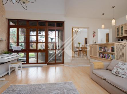 Pro vás, kteří hledáte bydlení v blízkosti Prahy a zároveň v klidu přírody, máme nabídku prostorného domu s dispozicí 7+1, s dvougaráží, 2x parkovacím stání a pozemkem 1 437 m2 v Dobřejovicích. Jeho dispozici tvoří v přízemí: - Zádveří - Předsíň - Samostatné WC - Obývací pokoj s krbem - Jídelna - Kuchyně - 2 x ložnice - Koupelna s WC - Sklad - Dvougaráž - Terasa V patře: - Chodba - 2 x koupelna s WC - Šatna - 3 x ložnice Dvě ložnice a koupelna s WC, které jsou situovány v přízemí, jsou odděleny a mohou být využity pro dvougenerační bydlení. Plynové vytápění je kombinováno s elektrickými vyhřívanými podlahami a krbem. Dřevěná okna, dřevěné plovoucí podlahy, v koupelnách pak na podlahách dlažba. Klid bydlení zajistí zabezpečovací systém Paradox. Elegantní dvoupodlažní dům v anglickém stylu stojí uprostřed rovné zahrady se vzrostlými stromy a keři, nechybí ani různé druhy těch ovocných. Pěstěný trávník udržuje automatická závlaha, zahradní technika je uskladněna v samostatném zahradním domku. Velký pozemek nabízí mnoho dalších využití, jako je například vybudování zimní zahrady, sauny, bazénu či rozšíření domu. Jedná se o příjemné a klidné místo přímo na hranici parku vedoucímu k Novému rybníku, na který navazuje Průhonický park. V obci se nachází státní i soukromá MŠ, ZŠ pak najdeme v Průhonicích. V blízkosti je i soukromá mezinárodní Sunny Canadien School či ZŠ a gymnázium Navis. Autem jste v centru Prahy za 15 minut, příměstský autobus vás doveze k metru Opatov. Nemovitost lze financovat hypotečním úvěrem, který Vám zdarma pomůžeme vyřídit za nejvýhodnějších podmínek na trhu. Nabízíme také možnost výměny domu za byt 3 + kk a větší v Praze + doplatek nebo byt 3 + kk v Praze + byt v Bratislavě + doplatek podle hodnoty bytů. PENB nebyl dodán, proto prozatím uvádíme třídu G. Přijďte se podívat, zveme vás na prohlídku!