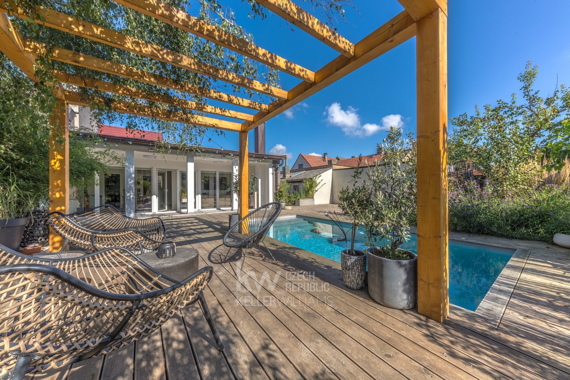 REZERVOVÁNO - Prodej RD 3+kk, bazén, pergola, terasa - Dobříč, Praha západ - Oáza klidu a soukromí n