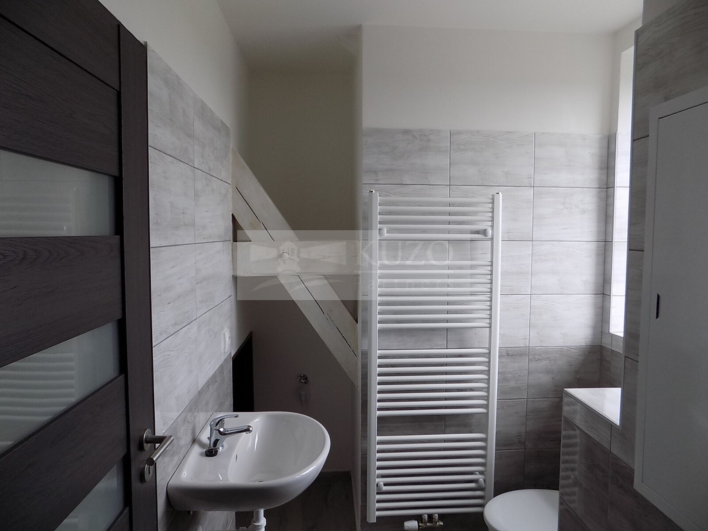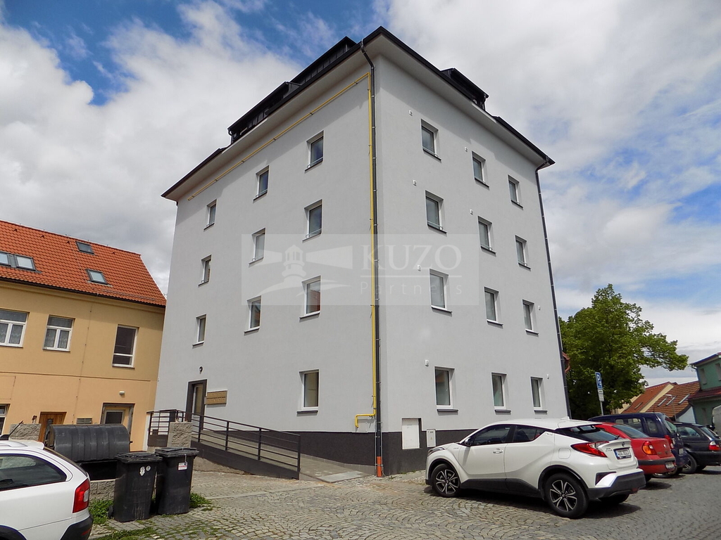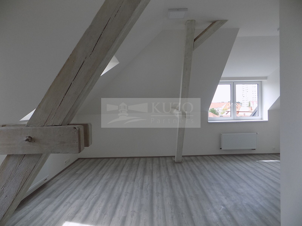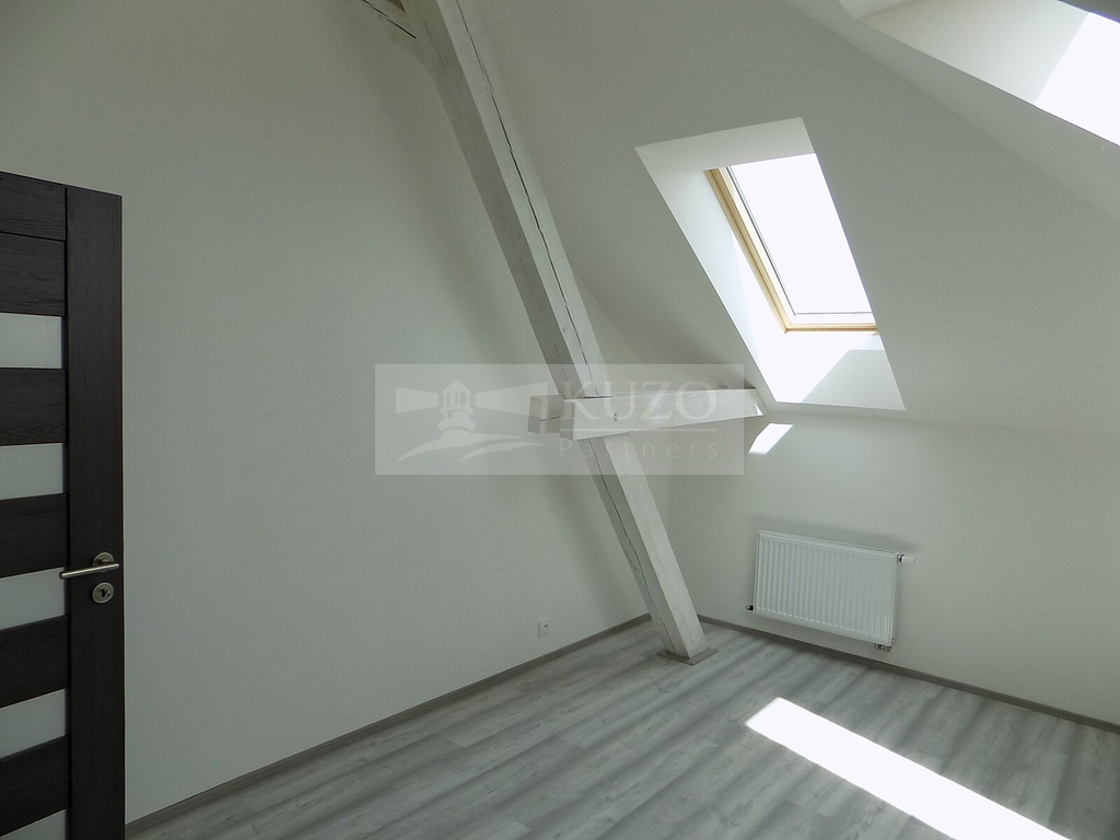 KUZO Partners Vám zprostředkují exkluzivně možný pronájem novostavby atypického podkrovního bytu 2+kk, 68 m2, v nově zrekonstruovaném bytovém domě, bývalém Špýcharu, který se nachází v těsné blízkosti centra města Dobříš. Byt v OV o celkové podlahové ploše 68 m2 se nachází ve čtvrtém nadzemním podlaží čtyřpatrového cihlového domu s výtahem a bezbariérovým přístupem. Členění bytu je následující: vstupní chodba, odtud vpravo vcházíme do kuchyně s komorou, novou kuchyňskou linkou a sporákem spojené s velkým atypickým obývacím prostorem, vlevo do prostorné obývací ložnice orientované na západ. Z chodby vstoupíme do samostatné koupelny se sprchovým koutem, umyvadlem, koupelnovým radiátorem a WC. Bytový dům, který disponuje deseti bytovými jednotkami, prošel nadstandardní kompletní rekonstrukcí a rozhodně uspokojí náročné klienty s požadavky vysokého standardu bydlení. Parkování je možné v těsné blízkosti domu. V blízkém okolí domu je veškerá občanská vybavenost. Nájemné včetně poplatků činí měsíčně 20000,- Kč ( 16500,- Kč nájemné a 3500,- Kč záloha na služby/ 2 osoby). Vratná kauce činí dvojnásobek nájemného 40000,- Kč. Energie bude převedena na nájemce. Ostatní informace v RK.