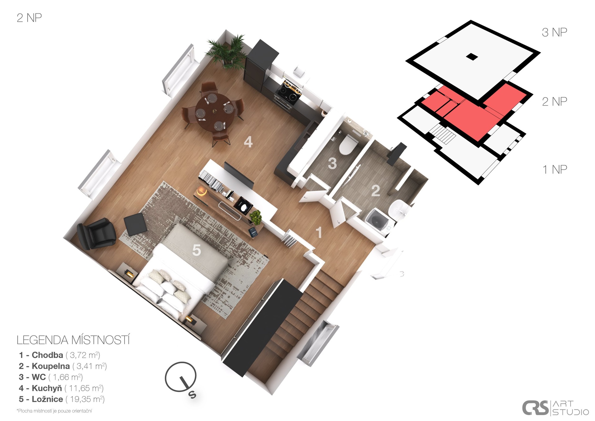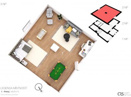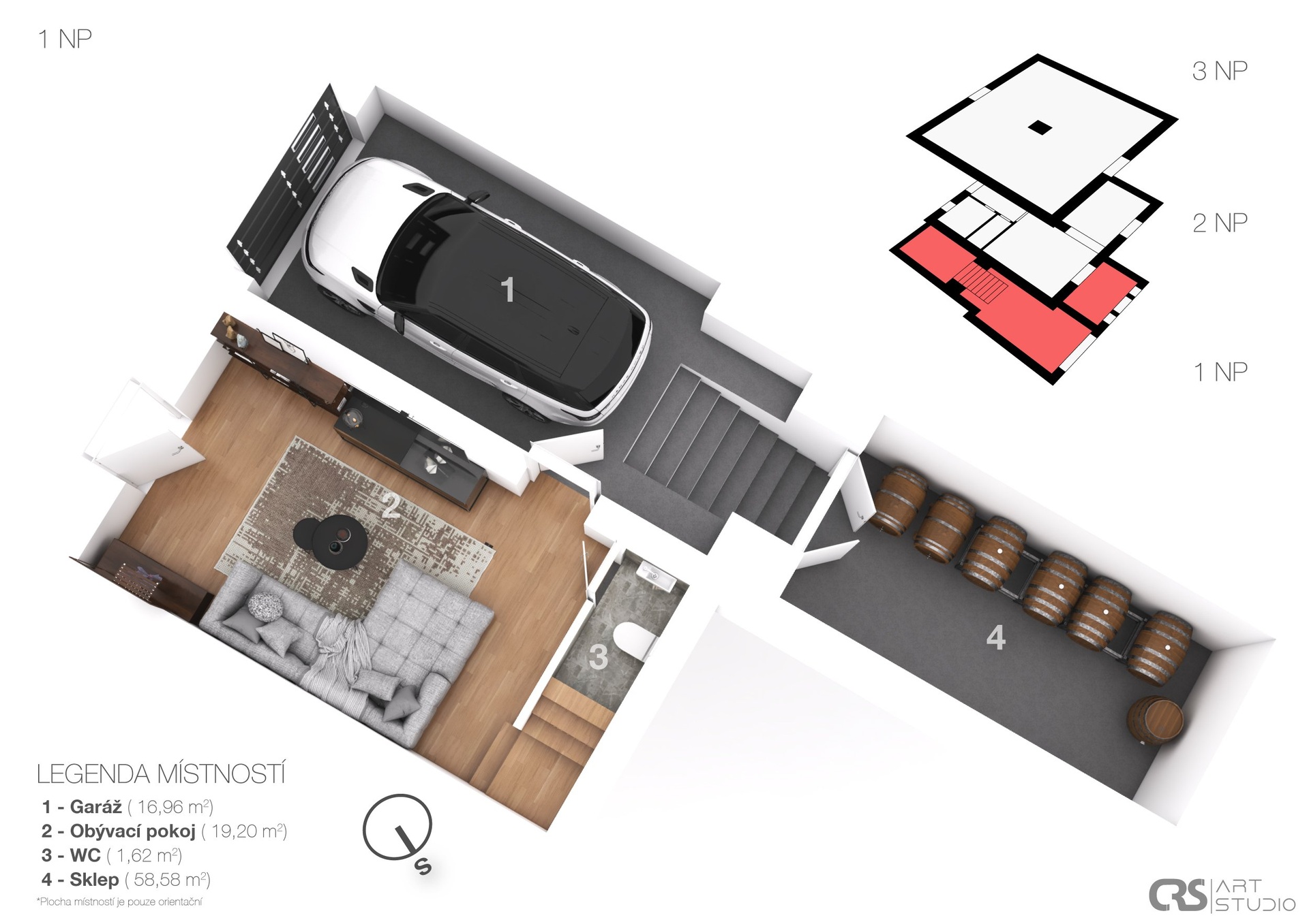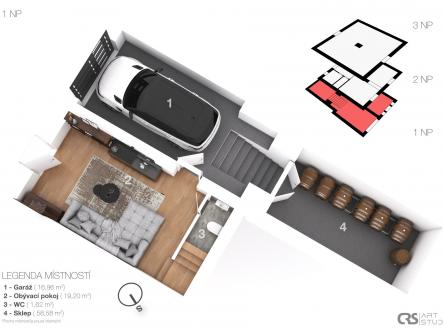 Přinášíme atraktivní i netypickou nabídku: útulný byt v domě, jehož součástí je krásný vinný sklep s cihelnou klenbou. Zveme Vás do Dobšic u Znojma, do jejich typické oblasti vinných sklepů, konkrétně do ulice Leska, kde se nachází mladý dům z roku 2002, který nabízí možnost vlastního vinného sklepa pro milovníky dobrého vína. Dům má dvě podlaží, využitelné podkroví a zastřešenou verandu. Celá nemovitost nabízí množství variant využití, úprav dispozice i rozšíření. Do loňského roku byla využívána k trvalému bydlení majitelů a za tím účelem byla i postavena. (Možnost evidence TP ověřujeme.) Dle legislativy se nejedná o rodinný dům, ale nemovitost s bytem. Pro komerční využití chystáme inzerci v Sreality.cz – nemovitosti ostatní – vinné sklepy. Součástí prodeje je i pozemek za domem o výměře 206 m2. K bydlení je určena místnost v přízemí domu a v patře kuchyň a pokoj. Dispozice tedy 2+1 nebo 2+kk. Je zde také podkroví, které čeká na své využití. Oproti mládí domu, je vinný sklep původní s odkazem na historii vinařského kraje. Sklep je původní a jeho krásná cihelná klenba s výškou 2,30 m2, je typickým a romantickým prvkem. Podlaha je tvořena pouze jemným pískem (jako u moře). Jsou zde ponechány i původní skleněné demižony v kovových koších. Ve sklepě je po povrchu rozvedena svépomocí elektřina. Dispozice domu je zobrazena ve 3D plánku, který je návrhem možného využití a vybavení. Doplnění k 3D zobrazení: 1.PP (přízemí z pohledu od cesty) vstup do domu: - v garáži je zavedena voda, zásuvka 380 V a topení (radiátor) - na garáž navazuje vinný sklep délky 22 m2 (58,58 m2) - v prostoru obývacího pokoje/vstupní místnosti je umístěn plynový kotel, který není ve vizualizaci zobrazen. Vlevo těsně u kotle byla krbová kamna s rozvodem tepla do radiátorů. Lze znovu osadit. 1.NP (první patro): - v kuchyni je klimatizace, kterou je možno, kromě chlazení, přitápět při poklesu teploty - v pokoji je malý úložný prostor, dle projektu podesta původně uvažovaného schodiště do podkroví 2.NP (podkroví): - pozor, v 3D návrhu není zohledněn skos stěn/střechy, bude opraveno. Rozložení nábytku tedy nemusí odpovídat reálným možnostem. Informace doplníme. - do podkroví je vstup možný dvěma způsoby: přes pochůznou střechu verandy nebo po spuštění skládacího schodiště ze stropu v předsíni 1.NP. Podkroví bylo využíváno jako pracovna a kutilská místnost majitele. Obecně: Nemovitost je napojena na obecní vodovod a kanalizaci. Teplo a teplou vodu zajišťuje plynový kotel. Povrchy podlah viz. foto. Dům je v katastru nemovitostí veden jako budova s číslem popisným s jedním bytem, jiná stavba. Zhotovení PENB je zadáno. První prohlídky budou v termínu od 08.01.2026. Makléř Vás bude telefonicky kontaktovat. Uvedené výměry jsou orientační. Veškeré zveřejněné údaje obsažené v tomto inzerátu mají pouze informativní charakter a nejsou nabídkou ve smyslu §1731nebo§1732 občanského zákoníku, ani se nejedná o veřejný příslib dle §1733 občanského zákoníku.