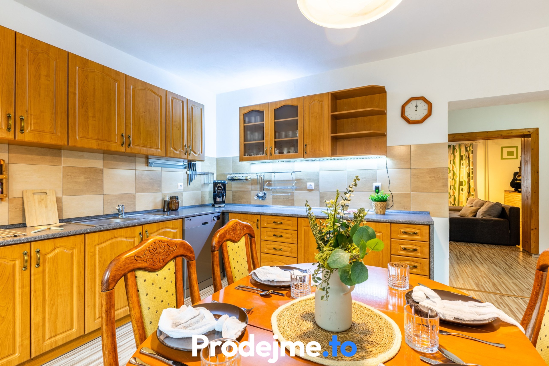 Prostor pro rodinu, soukromí pro každého a možnost bydlení bez nutnosti větších úprav. Takový je tento rodinný dům v Dobšicích. + 5+1 a 2+kk po rekonstrukci + užitná plocha 277 m² + pozemek 287 m² + terasa, balkon a zahrada + krytý bazén 5,8 × 2,9 m + pergola a zahradní domek + sklep a půda na skladování + plastová okna Hledáte dům, kde může bez kompromisů fungovat velká rodina, dvě generace nebo kombinace bydlení a podnikání? Tento cihlový rodinný dům nabízí praktické rozdělení na dvě samostatné bytové jednotky, dostatek soukromí a variabilitu využití pro každodenní život. Výhodou je také možnost okamžitého užívání bez nutnosti zásadních úprav. Dům má dvě nadzemní a jedno podzemní podlaží, obě jednotky sdílejí společnou zahradu. Přízemní bytová jednotka 2+kk Tato část domu prošla velmi povedenou a vkusnou rekonstrukcí. Jednotku o velikosti 98 m² tvoří prostorná chodba, velký obývací pokoj s praktickou kuchyňskou linkou včetně spotřebičů, ložnice a moderní koupelna se sprchovým koutem i vanou. Byt je téměř nový – obýván byl pouze jeden rok a spotřebiče jsou stále v záruce. Z obývacího pokoje je přímý vstup na společnou zahradu. Do bytu se vstupuje buď přes nebytový prostor v podzemním podlaží, nebo hlavním vchodem domu přes společnou chodbu. Hlavní bytová jednotka 5+1 Hlavní jednotka se nachází v prvním a druhém nadzemním podlaží a má celkovou plochu 168 m². Je v dobrém technickém stavu a nabízí pohodlné rodinné bydlení. Dominantou je velký obývací pokoj s kuchyňským koutem a přímým vstupem na terasu. Dále se zde nachází pokoj a samostatná toaleta. Ve druhém nadzemním podlaží je ložnice, dva další pokoje a koupelna s rohovou vanou a toaletou. Prostory k podnikání a úložné možnosti V podzemním podlaží se v místě původní garáže nachází rozlehlá nebytová místnost. Ta se hodí jako prostor k podnikání, dílna nebo praktické zázemí pro skladování. Další úložné prostory nabízí sklep ve stejném podlaží, šatna ve druhém patře a půda. Společná zahrada Venkovní část domu poskytuje příjemné prostředí pro každodenní fungování i odpočinek. Navazuje na ni terasa u jednotky 5+1, na pozemku je dále pergola pro posezení, zahradní domek a krytý bazén, který prodlužuje koupací sezónu a zvyšuje komfort bydlení. Zahrada je celá dlážděná, což ocení zejména ti, kteří nechtějí trávit čas náročnou údržbou. Technické informace Dům je vytápěn plynovým kotlem, ohřev vody zajišťuje elektrický bojler. V interiéru jsou plovoucí podlahy a dlažba, okna jsou plastová. Obě bytové jednotky mají společná měřidla energií. Lokalita Dům se nachází v klidné slepé ulici v Dobšicích, které plynule navazují na Znojmo. V docházkové vzdálenosti je škola, školka i základní služby. Okolí nabízí možnosti pro aktivní odpočinek – cyklostezku podél řeky Dyje, sportovní zázemí i volnočasové aktivity. Typickou atmosféru obce dotváří blízké vinné sklípky a pravidelné kulturní akce. Zaujal vás tento dům s možností vícegeneračního bydlení nebo kombinace bydlení a podnikání? Ráda vás přivítám na osobní prohlídce. S financováním vám pomohou naši specialisté na hypoteční úvěry.