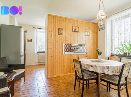 BO! Vám exkluzivně nabízí k prodeji rodinný dům v obci Dobšice, okres Znojmo. Patrový rodinný dům o zastavěné ploše 166 m² a celkové ploše prostorného rovinatého pozemku 1525 m², kde se dá postavit i další dům v klidné části obce Dobšice. Dispozice domu je 5+1 s garáží, sklepem a dílnou, s možností o rozšíření o další dva pokoje, nebo rozdělit na více bytových jednotek. Dům je vytápěn krbovými kamny s výměníkem a rozvodem do topení. Dříve byl dům vytápěn plynovým kotlem, který byl odpojen, ale dá se obnovit. Na zahradě je vlastní kopaná studna. Dům byl postaven v roce 1990, rozvody elektřiny v mědi a původní kuchyň, koupelna i dřevěná okna. V Dobšicích je kompletní občanská vybavenost. Máte zájem? Zavolejte nám. Rádi Vám pomůžeme i s financováním. Bližší informace Vám rád sdělím na prohlídce nemovitosti.