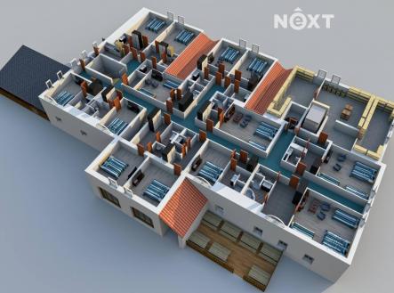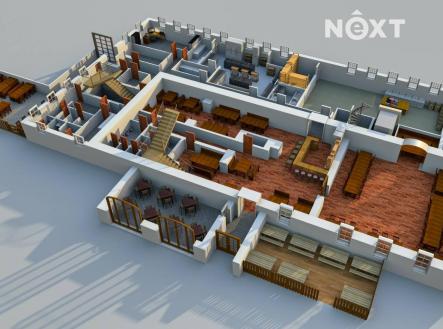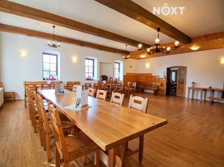 Nabízíme exkluzivně k prodeji komerční budovu ve Svinišťanech, která je v současné době užívána jako motorest. Je na velice zajímavém a frekventovaném místě u hlavního tahu Jaroměř-Náchod (E33). Popis budovy: V pravé části budovy z 1. PP přes 1. NP do 2. NP je možné dopravovat zboží – materiál nákladním výtahem a souběžně s výtahem prochází všemi patry točité schodiště. V levé části budovy je druhé širší schodiště, kterým lze rovněž vstoupit do všech podlaží domu. Po vstupu do budovy z parkoviště u silnice je třetí schodiště pro výstup z 1.NP do 2. NP. Dispozice 1. NP o celkové výměře užitné plochy 566 m2 Hlavním vchodem vstupujeme do restaurace o velikosti 46 m a do druhé prostorné místnosti – sálu o výměře 94 m2. V zadní části budovy s přístupem rovněž z vedlejší silnice pro vykládku a nákladu zboží je místnost o velikosti 86 m2, ve které je vstup do nákladního výtahu. V zadní části budovy jsou rovněž prostory kuchyně o celkové výměře 63 m2 se sklady a kanceláří, zázemím a sociálním zařízením pro zaměstnance. Dále jsou v tomto 1.NP salonky, herna s kulečníkem a WC pro hosty restaurace. Před vstupem je upravené venkovní posezení. Dispozice 2. NP o celkové výměře 544 m2. Zde je plánováno vybudovat cca 12 apartmánů s vlastní koupelnou a WC. V současné době jsou dokončeny dva apartmány 2+1 a 2+kk a garsoniéra. Ostatní jsou v různém stádiu rozpracovanosti. Dispozice 1. PP o celkové výměře 340 m2. Největší místnost je upravena jako chladící s přístupem do nákladního výtahu a má výměru 150 m2. Druhou místností je vodárna s vlastními vrtanými studnami. Dále jsou zde další sklady a dílna a v neposlední řadě kotelna na tuhá paliva pro vytápění celé budovy. Pod historicky původní částí budovy se nachází sklepení, které není v současné době využívané. Na všechna popisová podlaží je zpracovaná výkresová dokumentace. Budova nemá v současné době vyhotovený aktuální PENB, a proto je uváděna třída G. Zájemce zveme na prohlídku této zajímavé komerční budovy. Pro komunikaci uvádějte evidenční číslo zakázky N112699.