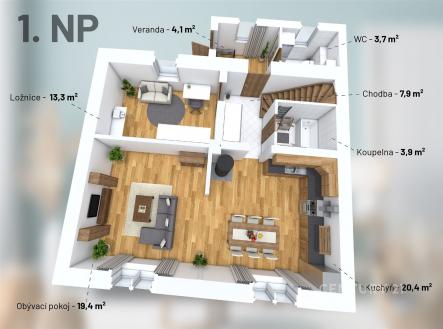 Hledáte dům s velkou zahradou a výbornou dostupností do Prahy i Kladna? V Dolanech u Kladna nabízíme rodinný dům 5+kk, který spojuje klidné bydlení na venkově a rychlý dosah města. Na okraji Prahy jste za 10 minut, do Kladna to máte pouhých 5 minut. V přízemí domu najdete prostorný obývací pokoj s kuchyní a krbovými kamny, samostatný pokoj vhodný například jako pracovna nebo pokoj pro hosty, koupelnu s vanou a velkou technickou místnost s prádelnou. V patře jsou tři hezky řešené pokoje, které poskytují dostatek soukromí pro rodinu i návštěvy. Skutečným benefitem je zahrada. Na rovinatém pozemku o téměř 1000 m² je garáž, parkování pro čtyři auta, technické stavby a velký prostor pro další využití – pergolu, bazén nebo vaše další zahradnické plány. Dolany u Kladna nabízí výborné spojení – autem jste rychle v Praze, veškeré služby máte v nedalekém Kladně. Vlaková zastávka budoucí rychlodráhy Kladno Praha je vzdálená 1 km. Pokud hledáte klidné místo s dostatkem prostoru a skvělou dostupností, tenhle dům je ideální volba. Dům bude připraven přivítat novou rodinu v srpnu.