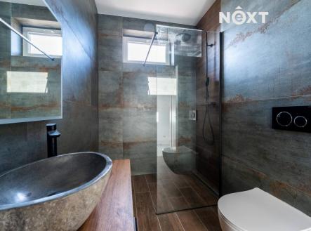Prodej novostavby moderního rodinného domu – komfortní přízemní dům s garáží Nabízíme k prodeji krásnou novostavbu rodinného domu s užitnou plochou 167 m² a zastavěnou plochou 215 m². Dům je navržen jako přízemní bez podkroví, s elegantní valbovou střechou o sklonu 24°. K dispozici je garáž pro jeden vůz a venkovní parkování pro další dvě auta. Dům nabízí celkovou užitnou plochu 167,09 m² a je prakticky rozčleněn do následujících místností: • Vstup (1.01) – 6,80 m² • WC (1.02) – 2,08 m² • Technická místnost (1.03) – 3,41 m² • Obývací pokoj s kuchyní (1.04) – 56,22 m² – prostorná hlavní obytná část domu • Ložnice (1.05) – 12,80 m² • Koupelna (1.06) – 6,29 m² • Šatna (1.07) – 8,92 m² • Chodba (1.08) – 4,67 m² • Pokoj (1.09) – 13,94 m² • Pokoj (1.10) – 10,38 m² • Koupelna (1.11) – 4,83 m² • Pokoj (1.12) – 14,35 m² • Garáž (1.13) – 22,40 m² Hlavní výhody domu • Moderní cihelná konstrukce se zateplením šedým EPS (15 cm) • Kvalitní keramické a cihelné stěny (tl. 30 cm) • Vnitřní příčky z porobetonu (10–15 cm) • Sádrokartonové stropy zavěšené na dřevěném krovu • Stropní izolace z minerální vaty ISOVER 360 mm • Izolační trojskla na oknech • Střešní krytina z betonových tašek Vytápění a technologie Dům je vytápěn teplovodním podlahovým topením napojeným na tepelné čerpadlo vzduch–voda, které zároveň zajišťuje ohřev teplé užitkové vody. Moderní a úsporné řešení zajišťuje nízké provozní náklady po celý rok. Na základě dohody je možné přistavět terasu, vybudovat bazén, případně realizovat jakékoli úpravy na přání budoucího kupujícího. Jedná se tedy o ideální příležitost přizpůsobit si nemovitost přesně podle vlastních představ — ať už jde o relaxační zónu, rodinné posezení nebo moderní zahradní prvky. Pro komunikaci uvádějte evidenční číslo zakázky N115086.