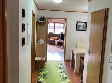 Nabízíme k prodeji krásný slunný byt 3+1, 102 m2 + balkon 8 m2. Byt je umístěný ve 2. patře (podkroví) domu v Bavorské Rudě, ul. Hafenbradlallee 14, okres Regen, Dolní Bavorsko. K bytu patří venkovní parkovací stání č. 3 a část dřevěného domku u domu, kde je možnost ukládání dřeva, příp. lyží atd.. Bavorská ruda se nachází pouhé 2 km od česko-německých hranic, poblíž Železné Rudy. Dispozice bytu - vstupní hala s jídelním koutem, spíž, kupelna s vanou a sprchovým koutem spojená s WC, 2x ložnice, kuchyně a obývací pokoj se vstupem na balkon. Z balkonu je krásný výhled do okolí, na horu Javor. V obývacím pokoji jsou umístěna krbová kamna. Dům je napojen na všechny sítě. Vytápění a ohřev vody zajišťuje centrální plynová kotelna umístěná ve sklepě domu. Byt je vytápěn radiátory a v koupelně a kuchyni je podlahové topení. Na podlahovém topení je položena dlažba. V obývacím pokoji a ložnicích je plovoucí podlaha. V bytě zůstává vybavení a zařízení, uvedené na fotografiích, včetně pračky a myčky. Vybavení je zahrnuto v ceně. Do bytu se vchází zadním vchodem, který je společný pouze se sousedním bytem, což poskytuje větší soukromí. V obci je základní infastruktura. Nádherná lokalita vhodná pro zimní sporty, především lyžování a v létě cyklistika. Průkaz energetické náročnosti nebyl dodán, proto je vyznačeno G, což však neodpovídá skutečnosti. Byt je možné využívat i k trvalému bydlení.