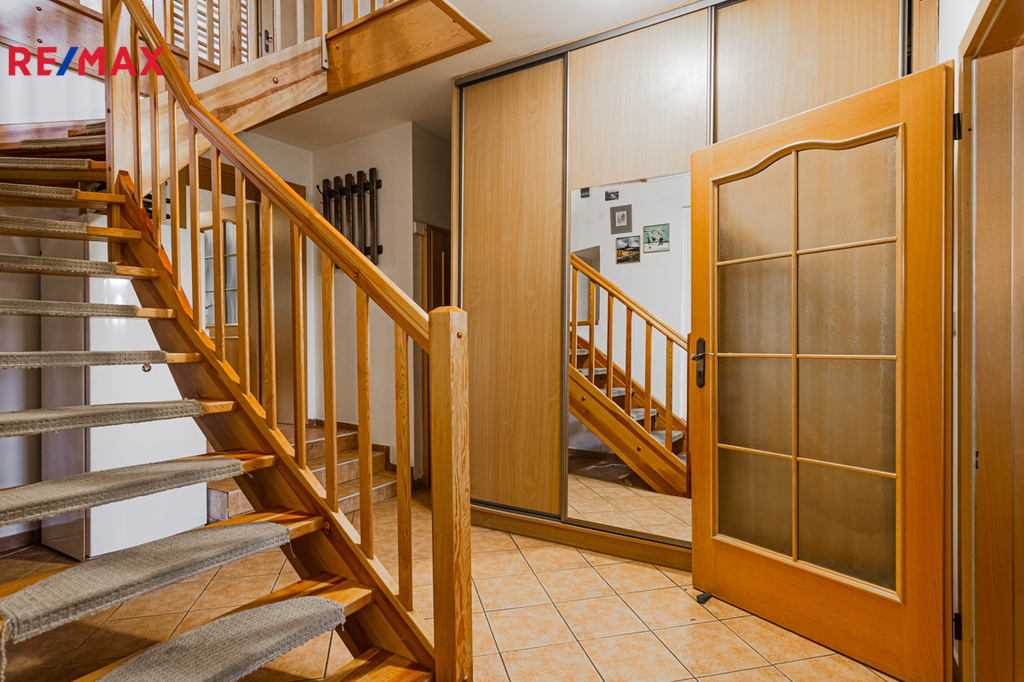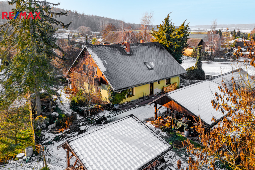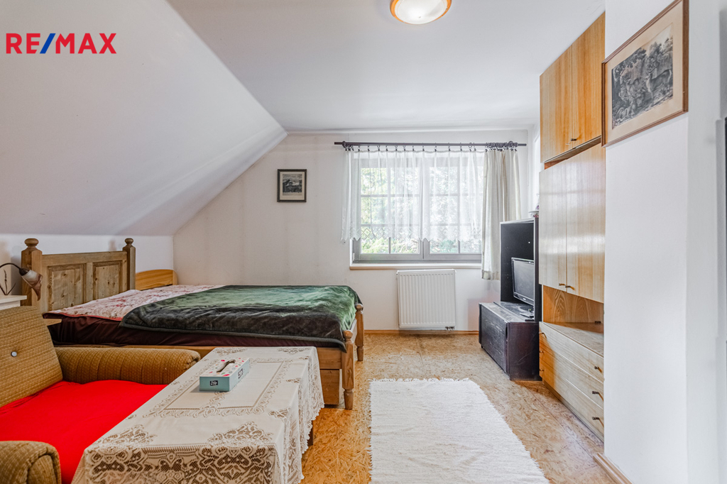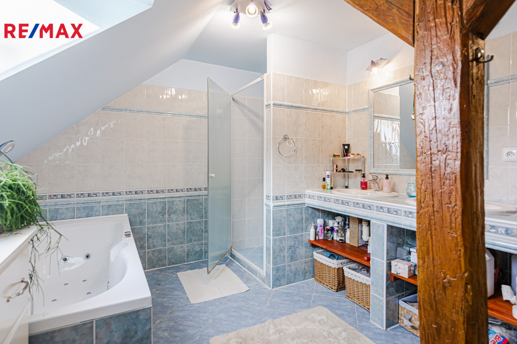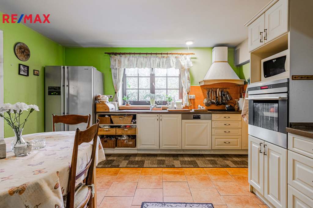 Nabízíme Vám k prodej vícegenerační rodinný dům s pozemkem 2283 m2 vhodný pro rodiny s dětmi po kompletní rekonstrukci v roce 2004. Dům je bývalá hájovna hraběte Kinského z roku 1909. Dispozičně je dům řešen jako 7+1+kk, 3 koupelny, 4 toalety. Celková užitná plocha činí 267 m2 Dům je rozdělen na 6+1 a na samostatnou garsoniéru s vlastní vchodem. Celý dům má přípravu pro zabezpečovací zařízení. V 1. NP se nachází vstupní hala se schodiště do 2. NP, dále do obývacího pokoje ze kterého se vchází do jídelny, ze které se vchází na velmi prostornou terasu a do kuchyně. V obývacím pokoji a jídelně jsou krásné dřevěné stropy. Dále přes technickou místnost a chodbu se vchází do samostatné 1+kk o celkové výměře 25 m2. Je zde bezbariérová koupelna s toaletou. V 2. NP je hala ze které se vchází do ložnic a do pracovny. Je zde samostatná koupelna s masážní vanou, další koupelna se sprchovým koutem a samostatnou toaletou a šatna. Z haly je vstup na půdu (výsuvným žebříkem), která má výškový profil 210 cm, plocha odpovídá půdorysu 2. NP. V roce 2024 byla nainstalována fotovoltaika 9,66 kWp s akumulací do baterií, na střeše je umístěno 23 ks FV solárních panelů. Pro případ výpadku elektrické energie je k dispozici benzínová centrála. Dům je vytápěn krbem s krbovou vložkou HAKA s výměníkem a 300 l akumulační nádobou. Koupelny a kuchyně mají podlahové topení, teplá voda je řešena elektrickým bojlerem. Podlahy jsou v kombinaci dubových prken a dlažby. Součástí nemovitosti jsou zateplené dvě garáže, dílna a 3 krytá parkovací místa, 3 dřevníky. Dům má vrtanou studnu, je napojen na obecní kanalizaci a vlastní ČOV s trativodem, pod celou kuchyní je sklep. Tato nemovitost kombinující pohodlí, prostor a blízkost přírody i městského života je skvělou volbou pro rodiny s dětmi. V případě zájmu o prohlídku neváhejte kontaktovat makléře nabídky.