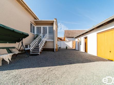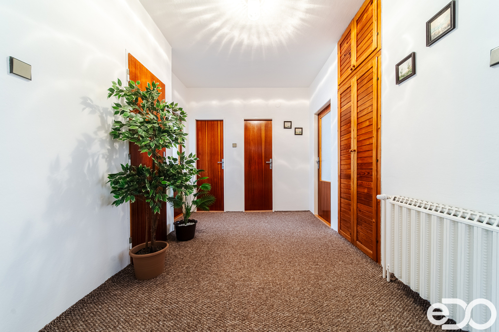 Hledáte dům, kde se snoubí prostor, funkčnost a možnost dalšího rozvoje? V Dolních Dunajovicích nabízím rodinný dům se zastavěnou plochou cca 130 m² a celkovou užitnou plochou 203 m², doplněný o vedlejší stavbu ve dvoře (dílna, garáž, sklad) o užitné ploše 42 m². Dům stojí v centru obce, ale mimo hlavní komunikace, což zajišťuje naprostý klid a soukromí s výhledem na Pálavu, přičemž vše potřebné (lékař, obchod, pošta, škola) je v docházkové vzdálenosti. Dispozice domu je 4+1+ zázemí, vše situováno v jednom podlaží. Dostatek úložného prostoru a případná možnost rozšíření o další obytné pokoje nabízí sklep přes celý půdorys domu. Pozemek o velikosti 519 m² je tak akorát velký, aby nabídl zázemí pro příjemné posezení, zeleninu, ovoce, ale přitom nevyžadoval složitou údržbu. Dispozice domu: Suterén (97 m²): tři sklepy, komora, sušárna, prádelna, kotelna, kuchyň a obytná místnost – ideální pro provozní zázemí, skladování nebo hobby využití. Přízemí (106 m² + lodžie 13 m²): prostorný obývací pokoj (28 m²) s výstupem na lodžii, kuchyň, ložnice, dva dětské pokoje, koupelna, WC, veranda, předsíň a zádveří. Vedlejší stavba (42 m²): garáž pro osobní vůz, dílna a sklad, zkrátka praktický doplněk domu, který zajišťuje prostor pro parkování, údržbu i uskladnění. Technické parametry: Rok kolaudace 1983. Stavba nabízí poctivý technický základ - žádné praskliny ani vlhkost, silnější zdivo oproti původnímu návrhu v projektu, zdvojená izolace, naddimenzovaná kapacita otopného systému. Nosná konstrukce zděná, stropy keramicko – železobetonové. Krov železný (třívrstvý nátěr), střešní krytina pálená. Komín se dvěma průduchy – na plyn i tuhá paliva. Okna plastová (2022), plastové vstupní dveře. Radiátory plechové s termoregulačními ventily. Vytápění plynovým kotlem (2017), ohřev vody elektrickým bojlerem. Elektroinstalace původní, ale v mědi. Inženýrské sítě: elektřina, plyn, vodovod, kanalizace. Dům je v původním, ale pečlivě udržovaném stavu. Díky kvalitní výstavbě, průběžným rekonstrukcím a údržbě, nabízí možnost okamžitého bydlení a případný potenciál pro budoucí modernizace. Prostorné sklepní místnosti nabízejí další možnost a využití pro podnikání či rozšíření obytné plochy. Dolní Dunajovice leží v srdci Pálavy, v okrese Břeclav, a patří k největším vinařským obcím regionu. Pro rodinné bydlení nabízí kompletní občanskou vybavenost: oba stupně základní školy, mateřskou školu, zdravotní středisko, obchody, poštu, lékaře, lékárnu, restaurace i sportovní areály. Aktivní lidé ocení cyklostezky vedoucí mezi vinicemi, možnost koupání a rybaření na nedalekých Novomlýnských nádržích, tenisové kurty i fotbalové hřiště přímo v obci. Okolní příroda láká k výletům po Dunajovických kopcích (Ořechová hora, Liščí vrch, Janův vrch atd.), na Pálavu či k vinařským tradicím. Skvělá dopravní dostupnost – do Mikulova za 5 minut, do Brna za půl hodiny a do Vídně za hodinu – dělá z Dolních Dunajovic ideální místo pro rodinný život s kombinací klidu, tradice, vína a pohody.