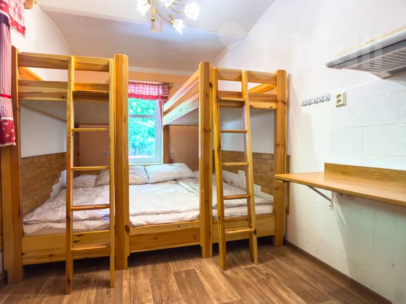!!! ZLEVNĚNO !!! Bidli Vám nabízí prodej chalupy. Chalupa je vhodná k trvalému bydlení, jako rekreační sídlo pro milovníky klidu, blízkých hor, cyklistiky a lyžování. Či jako investiční příležitost ubytovacího zařízení. Podlahová plocha činí 149m2 a je momentálně dispozičně řešena jako 6kk Chalupa leží na stráni v klidné oblasti u lesa v obci Dolní dvůr. Obec se nachází nedaleko Vrchlabí a Špindlerova Mlýna, je skvělým výchozím bodem pro turistiku cyklistiku nebo nordic walking a zimní sporty. V Dolním Dvoře najdete dva lyžařské areály které nabízí lyžování bez front na denně upravovaných svazích za nejlepší ceny v Krkonoších. Chalupa může poskytnout ubytování pro 22 osob v 5 ložnicích. Čtyři koupelny se sprchovými kouty umyvadly a dvěma samostatnými toaletami. V Patře se nacházejí také další dvě samostatné toalety. Vytápění elektrické a krbové kamna. Možnost parkování u chalupy pro tři auta na pozemku o velikosti 152m2 a posezení z druhé strany chalupy s ohništěm. Pro více podrobnějších informací či sjednání nezávazné prohlídky nás kdykoli kontaktujte. V případě zájmu Vám zdarma zajistíme nabídku financování hypotečním úvěrem za nejvýhodnějších podmínek na trhu.