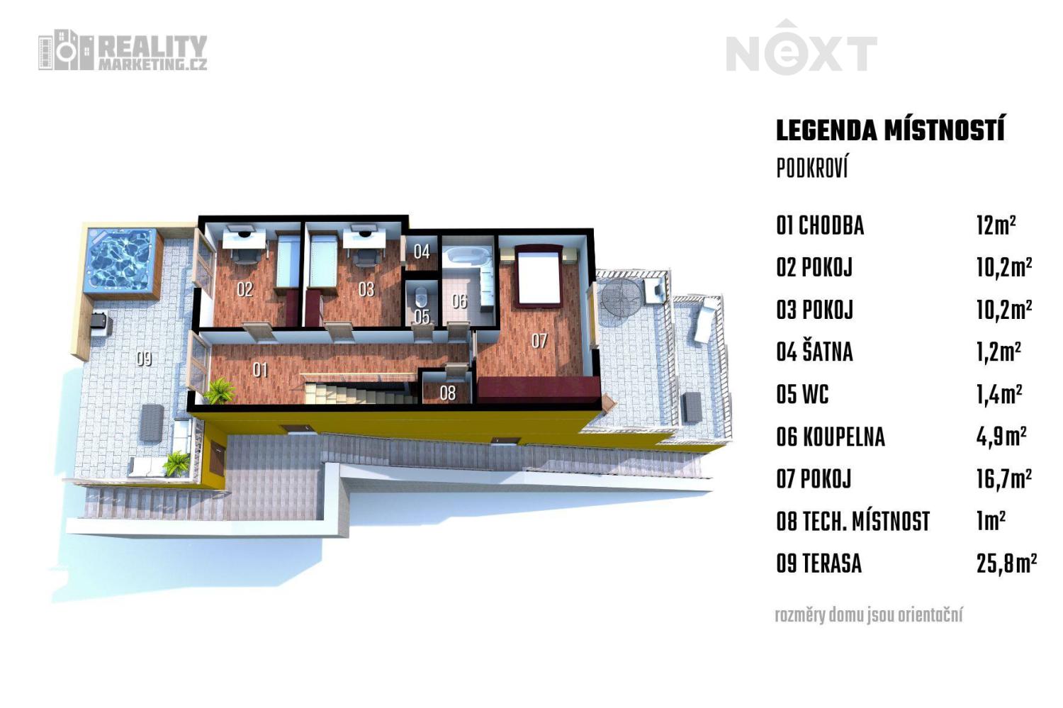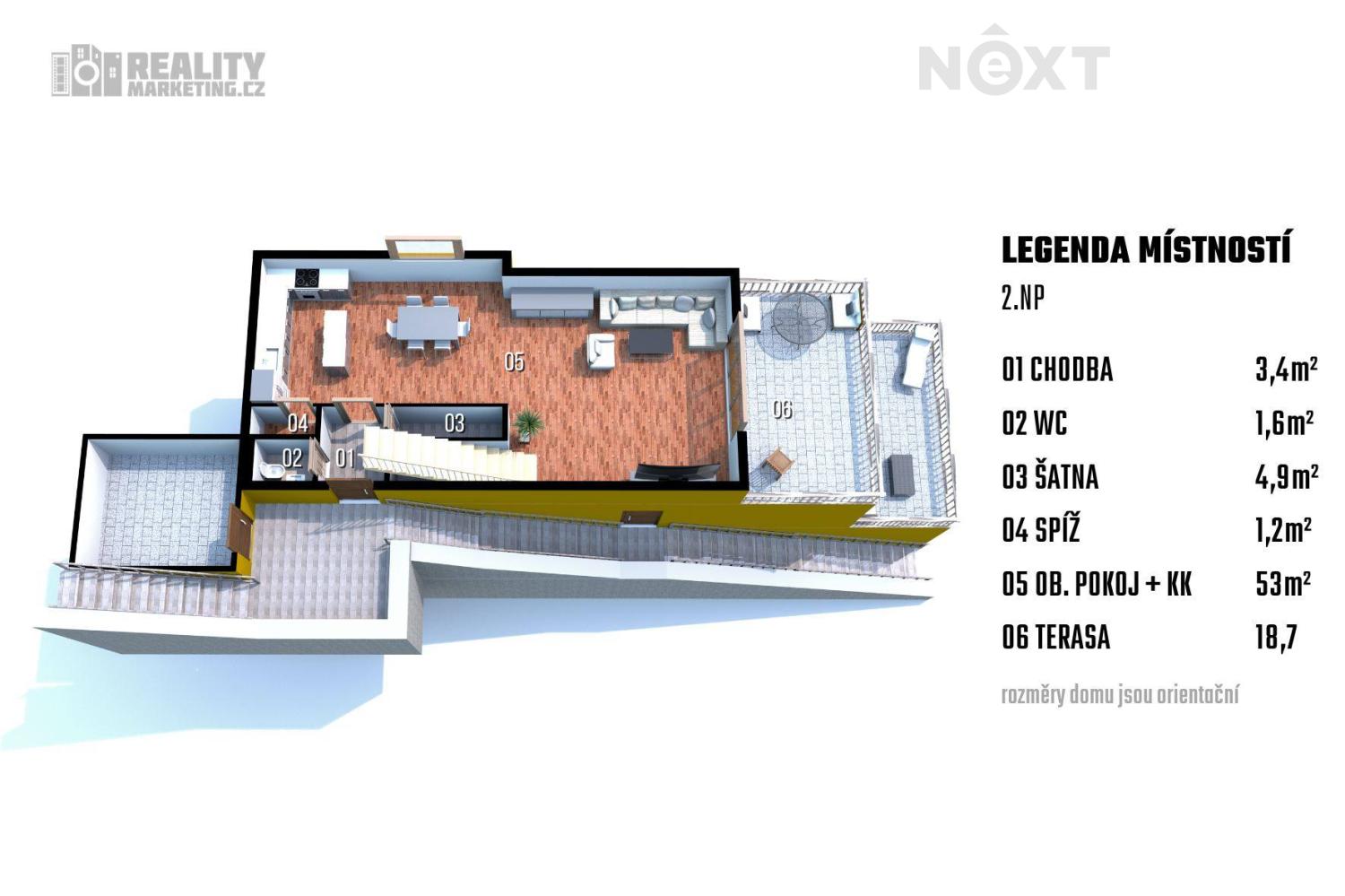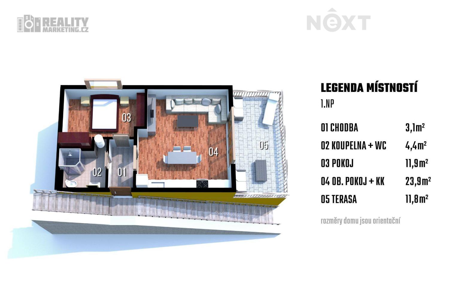 Ve výhradním zastoupení nabízíme k prodeji jedinečnou rezidenci nad řekou – prostorný dvougenerační rodinný dům o užitné ploše 176 m², umístěný na atraktivním pozemku o velikosti 460 m². Dům má k dispozici dvě samostatné bytové jednotky 2+kk a 4+kk. Dům poskytuje krásný výhled na řeku, přičemž se nenachází v záplavovém pásmu. Jeho dispozice a uspořádání nabízí ideální zázemí jak pro vícegenerační bydlení, tak pro ty, kteří chtějí využít jednu z bytových jednotek k pronájmu a snížit si tak náklady na bydlení. Dispozice domu Suterén Kryté: parkovací stání 1. nadzemní podlaží – samostatná jednotka 2+kk (43,4 m²) s terasou 12 m² Menší bytová jednotka nabízí ložnici 11,9m2, koupelnu s WC 4,4m2, předsíň 3,1m2 a obývací pokoj s kuchyňským koutem 23,9m2, ze kterého se vychází na terasu s příjemným výhledem. 2. nadzemní podlaží – vstup do mezonetu 4+kk Po vstupu do hlavního bytu vás uvítá předsíň 3,4m2, ze které vede vstup do šatny, na samostatné WC a do prostorného obývacího pokoje s kuchyní o výměře 53 m². Součástí je i praktická spíž a vstup na druhou, 19metrovou terasu. Na tomto podlaží se nachází také sklep 12m2, který slouží jako perfektní úložný prostor. 3. nadzemní podlaží: V horní části mezonetu najdete prostornou chodbu 12m2, tři neprůchozí pokoje o výměře 10,2,10,2 a 16,7m2, koupelnu, WC, technickou místnost a druhou šatnu. Z chodby i z ložnice je přímý vstup na největší terasu o velikosti 25,8 m², která dále navazuje na zahradu – což vytváří krásně propojený a velmi vzdušný obytný prostor. Už při vstupu vás nadchne, jak promyšleně je dům navržen. Disponuje hned třemi prostornými terasami, které nabízejí perfektní místo pro relaxaci, posezení nebo výhled do zeleně. Z největší terasy je navíc přímý vstup na privátní zahradu, která poskytuje dostatek prostoru pro rodinné aktivity, děti, zahradní posezení nebo pěstování. Velkým benefitem domu je také nadstandardní množství úložných prostor – k dispozici je prostorný sklep a rovněž dvě samostatné šatny, které výrazně zvyšují komfort každodenního života. Nový majitel má možnost dokončit interiér dle vlastních představ – výběr obkladů, dlažeb, podlah, interiérových dveří, sanity i barev. Průkaz energetické náročnosti je vedený ve tříde třída C-úsporná. Dolní Kounice jsou vyhledávaným místem pro rodinné bydlení díky nádherné přírodě, historické atmosféře a celkově klidnému prostředí. Nabízejí kompletní občanskou vybavenost – školu, školku, zdravotnictví i sportoviště – a zároveň skvělé možnosti pro volný čas v podobě turistických tras, vinic a kulturních akcí. Obec má výbornou dostupnost do Brna, takže si můžete užívat ticha a zeleně, aniž byste se vzdali pohodlí městského života. Pro komunikaci uvádějte evidenční číslo zakázky N115877.