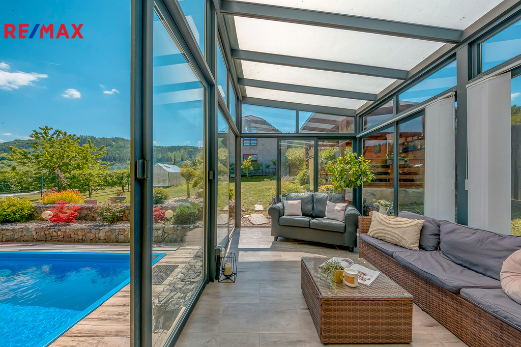 Nově jsme si pro vás připravili na prodej rodinný dům se zimní zahradou a krytým bazénem. Hledáte klidné bydlení v lokalitě s dobrou dostupností do centra města i přírody? Nabízíme k prodeji rodinný dům o celkové užitné ploše 170 m2. Dům se nachází na pozemku o celkové rozloze 636 m2. Dům je kompletně podsklepený, zateplený, fasáda a střecha s přestavbou nad vchodem byly dělány před 10 lety. V domu je také prostorná garáž, která navazuje na sklep. Jedná se o dvoupatrový dům v ulici, kde je velký klid a rodinná atmosféra. V prvním patře domu se nachází obývací pokoj s balkónem, ložnice, nová menší kuchyně, koupelna a oddělená toaleta. Z chodby do prvního a druhého patra vedou dveře na zimní zahradu, ze které je výhled na krásně upravenou zahradu a bazén. V druhém patře jsou dva samostatné pokoje, které jsou klimatizované, obývací pokoj s balkonem, původní kuchyně, nová koupelna se sprchovým koutem a samostatná toaleta. Dům je kompletně podsklepený. V suterénu se nachází prostorná garáž a dvě samostatné místnosti, které slouží jako technické místnosti. Vjezd do garáže je přímo z ulice. V jedné z místností ve sklepě je technická část, kde je plynový kotel na vytápění domu . Ohřev vody je přes elektrický bojler. Ve spodním patře si můžete přitápět v krbových kamnech. U domu je teplené čerpadlo na ohřev bazénu, dále je pak ve sklepě k bazénu písková filtrace s čerpadlem a dávkovačem chloru. Dům je napojený na veškeré inženýrské sítě (voda, plyn, elekřina a kanalizace). U domu je také studna, která zde zůstala historicky a může sloužit jako zdroj vody například na zalévání. Dům se nachází v jedné z nejžádanějších lokalit, která nabízí klidné a bezpečné prostředí pro život. Dostatek zeleně a blízkost přírody, dobrou dostupnost do centra města. Dolní Loučky jsou obec v okrese Brno-venkov v Jihomoravském kraji. V obci je mateřská a základní škola, obchod s potravinami, kadeřnictví, zubní a praktický lékař a restaurace. Občanská vybavenost je menší, ale pro rodinu s dětmi dostačující. Větší občanská vybavenost je přibližně 10 minut autem v Tišnově, kde jsou veškeré obchody a nemocnice. Z Dolních Louček jste za 25 minut vlakem v centru Brna. Dům je ideální pro větší rodinu, nebo jako dvougenerační bydlení, protože každé patro má svůj samostatný vchod. Pokud vás naše nabídka zaujala, neváhejte se ozvat. Rádi vám poskytneme další informace a osobní prohlídku.