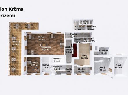 Zavedený penzion s restaurací v centru Dolní Moravy Nabízíme k prodeji zavedený rodinný penzion Krčma, situovaný přímo v centru Dolní Moravy. V docházkové vzdálenosti se nachází lyžařský areál, Stezka v oblacích, Sky Bridge 721 a nový aquapark s wellness. Součástí penzionu je stylová restaurace s barem a kamennou pecí na pizzu. Restaurace je dlouhodobě vyhledávaná ubytovanými hosty i návštěvníky Dolní Moravy. Penzion poskytuje ubytovací kapacitu v apartmánech a pokojích, k dispozici je wellness zóna se saunou a vířivkou. Dále jsou k dispozici dva samostatné byty vhodné pro majitele či personál. Objekt je průběžně rekonstruován, poslední výrazná modernizace proběhla v roce 2021 a je plně provozuschopný bez nutnosti dalších investic. K dispozici je rozlehlá zahrada, zastřešená terasa, vlastní parkoviště, lyžárna a úschovna kol. Díky strategické poloze a zavedenému provozu představuje penzion atraktivní investici s okamžitým výnosem. Je možno dokoupit i další pozemky se schváleným stavebním povolením k výstavbě rodinného domu nebo dalšího ubytovacího objektu. Pro více informací nebo sjednání osobní prohlídky nás neváhejte kontaktovat.