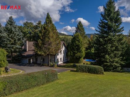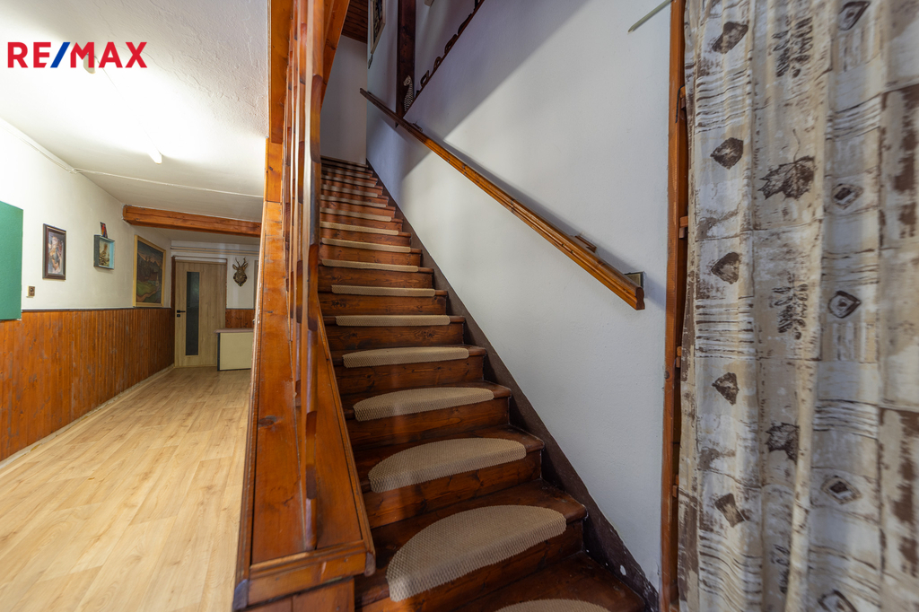 Prodej unikátní horské nemovitosti – Dolní Morava. Pokud hledáte nemovitost, která kombinuje horskou atmosféru, velkorysý prostor a možnosti všestranného využití, pak vás tento dům na Dolní Moravě rozhodně zaujme. Jen pár kilometrů od Králického Sněžníku, v lokalitě s celoročním vyžitím – v zimě lyžařské vleky, v létě turistické a cyklistické trasy – stojí tento objekt s rozsáhlým souborem pozemků o celkové výměře 16.338 m². Samotná nemovitost prošla částečnou rekonstrukcí v letech 1990–1995. Vybudována byla veranda, společenská místnost, terasa, čistírna odpadních vod, postavena nová kotelna a komín, provedena nová izolace, omítky i výmalby, osazena nová okna i střešní krytina. Součástí je i zastřešený vyhřívaný bazén s kompletní technologií o rozměrech 7,60 × 3,60 m, který poskytuje komfortní zázemí pro relaxaci v každém ročním období. Nemovitost je nabízena včetně nábytkového interiérového vybavení, takže nový majitel může okamžitě využívat celý objekt. Dispozice domu: • Přízemí (1. nadzemní podlaží) – velká společenská místnost s krbem a barem, kuchyň, pomocná kuchyně, sociální zařízení (2× WC, umývadlo), obývací pokoj, dvě dílny, garáž až pro 3 automobily, kotelna a zastřešená terasa s krbem. • 1. patro (2. nadzemní podlaží) – dva třílůžkové pokoje s vlastním sociálním zázemím, samostatná koupelna, dva dvoulůžkové pokoje se společným příslušenstvím, komora na prádlo a šatstvo. • Podkroví (3. nadzemní podlaží) – dva pokoje bez příslušenství, určené k ubytování až 6 osob. Součástí je také rozsáhlá patrová stodola, částečně podsklepená, s možností parkování minimálně pro 6 aut, nebo využitelná pro další podnikatelský záměr. Technické parametry nemovitosti: • vytápění zajišťuje nový automatický kotel s podavačem na tuhá paliva (peletky) • ohřev vody pro celý dům: 2 bojlery po 200 l • střešní krytina: kombinace betonové tašky a plechu • podlahy: v přízemí betonové, v ostatních patrech dřevěné trámové pokryté deskami • k dispozici obecní voda, elektřina 220 V i 380 V • odpady svedeny do septiku (vyváženého) • okna částečně plastová, částečně dřevěná • bazén: zastřešený, vyhřívaný, 7,60 × 3,60 m, s kompletní technologií Pozemky tvořící celek: • zastavěná plocha a nádvoří: 696 m² • ostatní plocha + příjezdová komunikace: 793 m² • trvalý travní porost (za domem, přecházející v les): 7.206 m² • parcela vlevo od domu: 4.023 m² • parcela vpravo od domu se stodolou: 3.620 m² K nemovitosti náleží i velký venkovní krb s posezením a nově oplocený pozemek, který zajišťuje naprosté soukromí. Díky rozsahu a poloze je tento objekt ideální jak pro rodinné bydlení, tak pro komerční využití – horský penzion, ubytování pro turisty, firemní akce nebo wellness. Pokud hledáte investici do jedinečné horské nemovitosti s velkorysým prostorem, atmosférou a kompletním vybavením, pak je tento dům na Dolní Moravě tou pravou volbou.