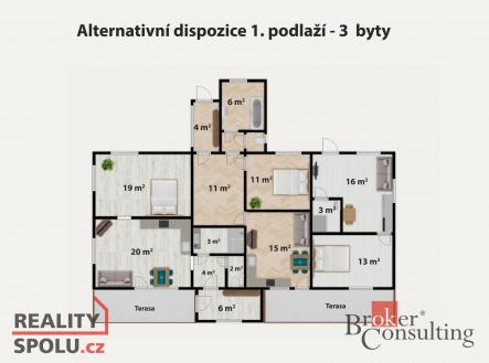 Hledáte klidné zázemí většího rodinného domu umístěného u lesa a přitom s výbornou dostupností a pár minut autem od Hostinného - místa s dostatečnou občanskou vybaveností ? Dům je vhodný pro větší rodinu nebo pro podnikatele. Rovněž může být zajímavý i pro developery. I další větší města jsou docela blízko na dojezd např. Trutnov, Dvůr Králové, Jilemnice, Vrchlabí a Nová Paka. Nabízíme poctivý, větší rodinný dům se současnou obytnou plochou cca 140 m² a s celkovou plochou 252 m² včetně garáže a půdy. Dům stojí na rovinatém pozemku o celkové výměře 3 105 m². Pro developery je zde možnost výstavby až 9 bytů s úvahou s dalším domem na pozemku - viz půdorys a nákres pozemku s možnými garážemi. Na fotkách jsou 2 návrhy možného budoucího obývacího pokoje s kuchyňským koutem. Dále jsou na konci fotodokumentace nákresy stávajícího i možného budoucího dispozičního uspořádání s 9 byty. Návrh byl v obecné rovině z hlediska potenciální výstavby více bytů konzultován se stavebním odborem a územním plánováním v Trutnově. Poctivý zděný dům je v původním udržovaném stavu s novějším kotlem na pelety s automatickým podáváním a ústředním topením. V přízemí je vstup chodbičkou do velké chodby, kde jsou kamna a schodiště do patra. Z této chodby je vstup do prostorné kuchyně a dále se v přízemí nacházejí tři pokoje, koupelna a WC. Součástí přízemí je také velká garáž, pod kterou jsou menší sklepní prostory. V patře se nachází velký a malý pokoj, vstupní chodba se schodištěm a dále půdní prostory. V domě se částečně bydlí a vše je funkční. Obec Chotěvice se zajímavým kostelem leží mezi Trutnovem a Hostinném a je třetí největší obcí na Trutnovsku - vzdálena od Hostinného 4 km a od Trutnova 13 km a od Jičína 38 km. V obci je základní občan. vybavenost tzn. obecní úřad, ZŠ pro 1. až 5. stupeň a lékař. Hostinné s veškerou občanskou vybaveností je poměrně blízko. Ve městě jsou školy, školky, obchody, lékařská zařízení a další služby. Dopravní dostupnost je rovněž výborná, včetně spojení autobusovou i železniční dopravou. Pokud jste nabyli dojmu, že je to pro vás to pravé místo pro bydlení, neváhejte mě kontaktovat. Pomohu se vším, včetně financování. Těším se na vás. Ivan Junek, 17 let v oboru realit, nyní v synergii s Broker Consulting a.s.