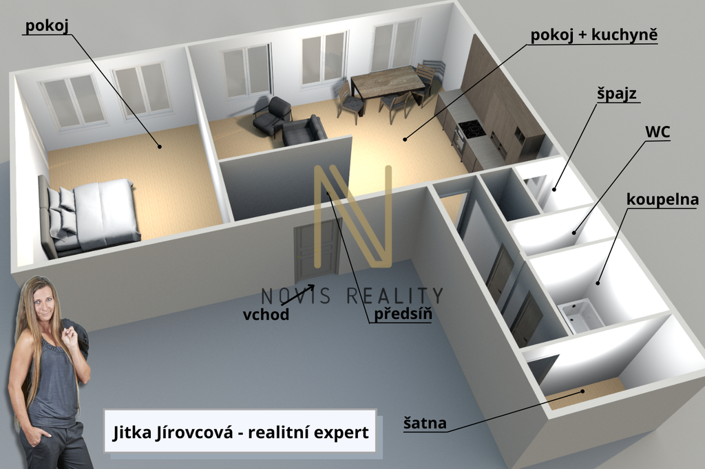 Nabízíme k pronájmu jedinečný atelier o dispozici 2+kk, který se nachází v srdci Domažlic na náměstí Míru. Tento prostorný a světlý byt s užitnou plochou 69 m² je umístěn v mezipatře třípatrového bytového domu, jenž je ve velmi dobrém stavu. Interiér bytu je jen částečně vybaven, což umožňuje novému nájemci dotvořit si prostor podle vlastních představ a vkusu. Kuchyňská linka, vybavená elektrickým sporákem a troubou, nabízí ideální příležitosti k vaření a přípravě oblíbených pokrmů. Koupelna s vanou poskytne relaxaci po náročném dni. Byt vyniká svou skvělou lokalitou, jež umožňuje pohodlný přístup k občanské vybavenosti. V blízkosti se nachází obchody, restaurace a kulturní vyžití, které obohatí každodenní život. Na své si přijdou jak milovníci městského ruchu, tak ti, kteří preferují klidné chvíle strávené na zahrádce ve vnitrobloku. K dispozici je také společný sklep, kde můžete uskladnit potřebné věci, jako jízdní kola či pneumatiky. Byt je skvělou příležitostí pro jednotlivce i páry, kteří hledají pohodlné a atraktivní bydlení s výbornou dostupností všech služeb. Požaduje se nájemné ve výši 12.000,-Kč + zálohy na služby ve výši 4.000,-Kč a elektrickou energii ve výši 2.000,-Kč (zálohy na služby a elektřinu jsou orientační, upraví se dle počtu osob v bytě a s ohledem na nový kotel a změnu dodavatele), dále pak vratná kauce 18.000,- Kč a odměna RK ve výši 12.000,- + DPH. Vzhledem k tomu, že si nynější nájemce nepřeje zveřejňovat fotodokumentaci jeho vybavení a osobních věcí doporučuji prohlídku. Pro více informací mě neváhejte kontaktovat.