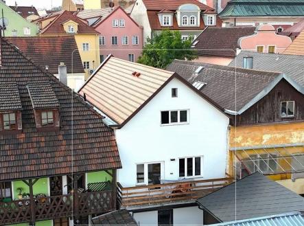 Zrekonstruovaný dům ke komerčnímu využití v centru Domažlic.