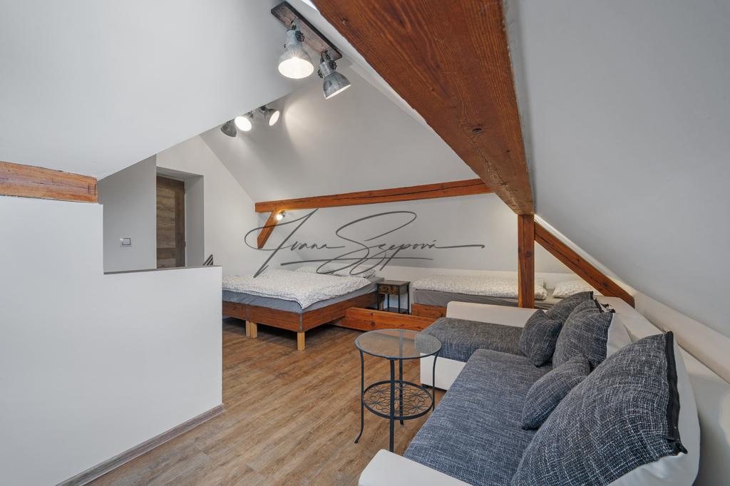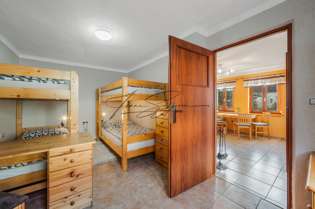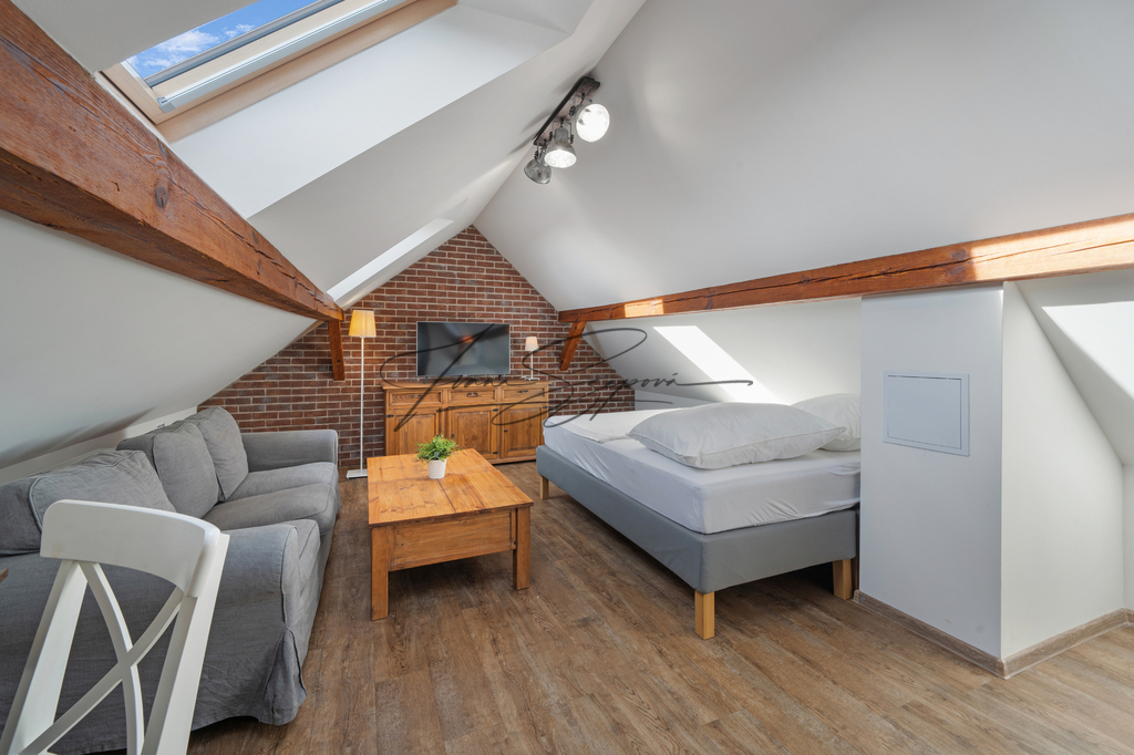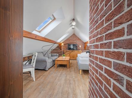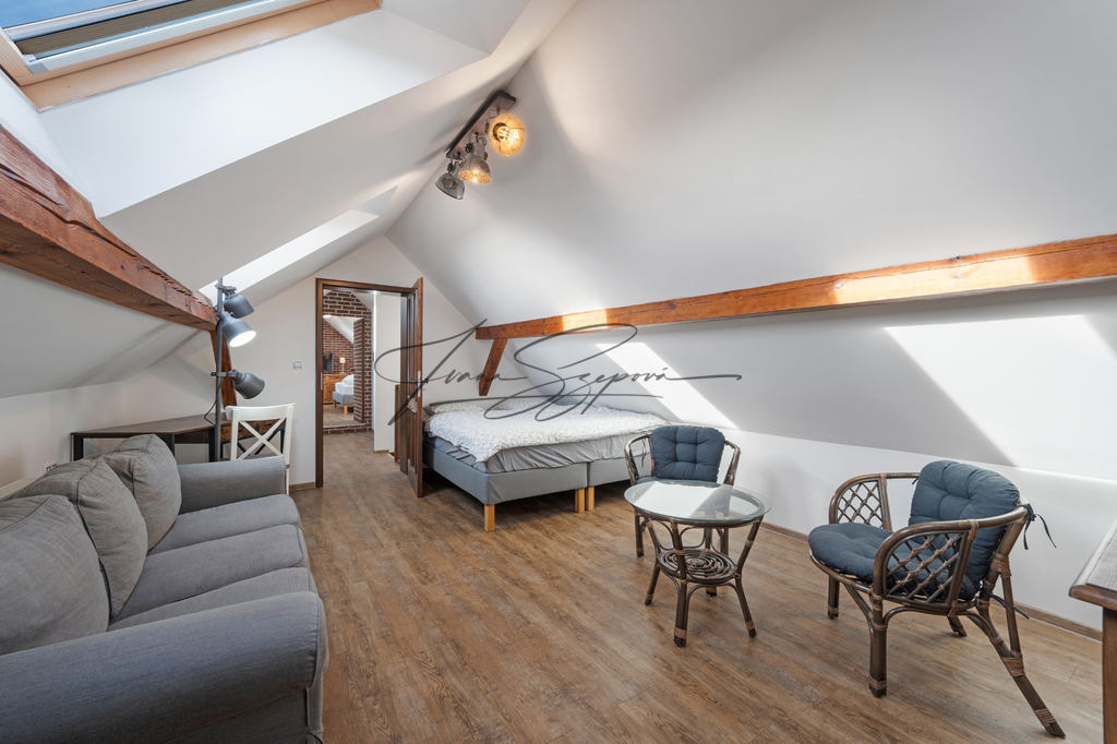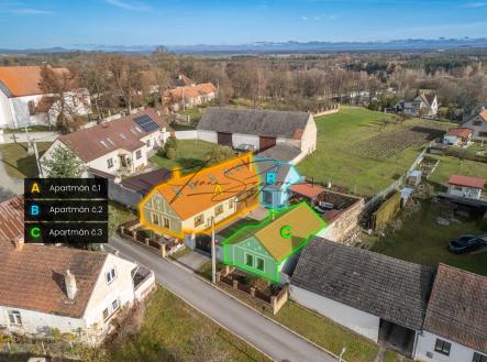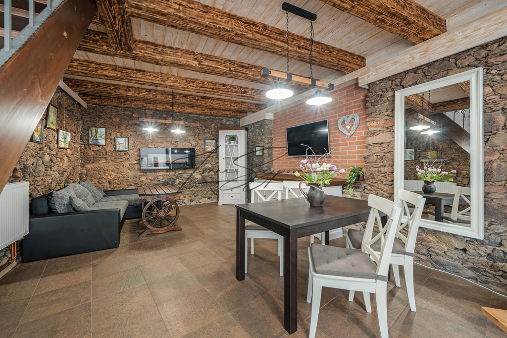 Dům je rozdělen na tři samostatné bytové jednotky: byt 3+kk, apartmán 3+kk a vejminek 2+kk s garáží. Celková užitná plocha činí 208,8 m² (byt + apartmán) a 44,2 m² (vejminek s garáží). Rekonstrukce domu proběhla v roce 2015, samostatný apartmán vznikl v roce 2022. Parkování je zajištěno na uzavřeném dvoře pro tři vozidla a dále v garáži. Nemovitost je napojena na veřejný vodovod, veřejnou kanalizaci, elektřinu a plyn. Vytápění je zajištěno plynem, elektřinou a kamny na tuhá paliva. V objektu jsou radiátory, v koupelnách podlahové vytápění, v bytové jednotce a ve vejminku kachlová kamna. Podlahové krytiny tvoří dlažba, vinyl a lino, elektroinstalace je provedena v mědi. Měsíční náklady na provoz domu činí přibližně 4 800 Kč/M. Lokalita nabízí klidné bydlení s možností rekreace. V blízkém Veselí nad Lužnicí (cca 8 km) se nachází pískovny využívané ke koupání a kulturním akcím, cyklostezky a kompletní občanská vybavenost. Skvělá dopravní dostupnost – Praha 1 hodinu 20 min., České Budějovice 20 min. jízdy po dálnici. Nemovitost je dlouhodobě využívána ke krátkodobému ubytování, přičemž kupující může převzít kompletně zaběhnutý provoz včetně aktuálních rezervací, případně provoz ukončit a objekt využívat k vlastnímu bydlení či dlouhodobému pronájmu. Nemovitost je vedena na rezervačních portálech Booking, DDS TOUR/chalupy, e-chalupy a Interbohemia. Kapacita ubytování činí 4–6 lůžek v apartmánu a 4 lůžka ve vejminku. V letní sezóně probíhají převážně týdenní pobyty so–so, obsazenost je zajištěna v průběhu celého roku. Více informací Vám poskytne realitní makléřka Ivana Szepová.