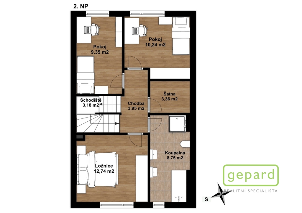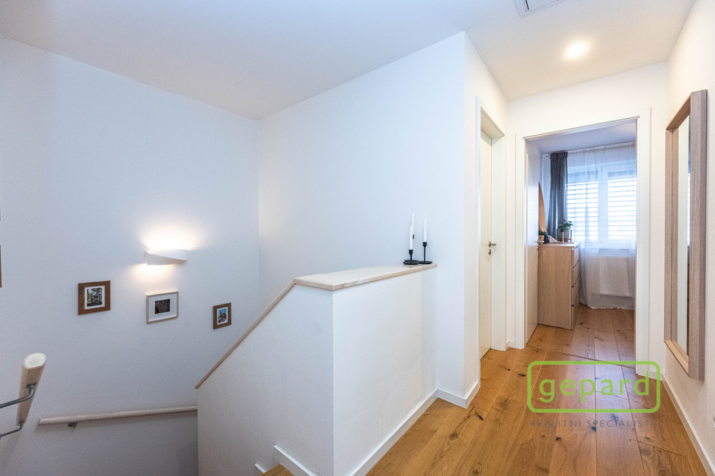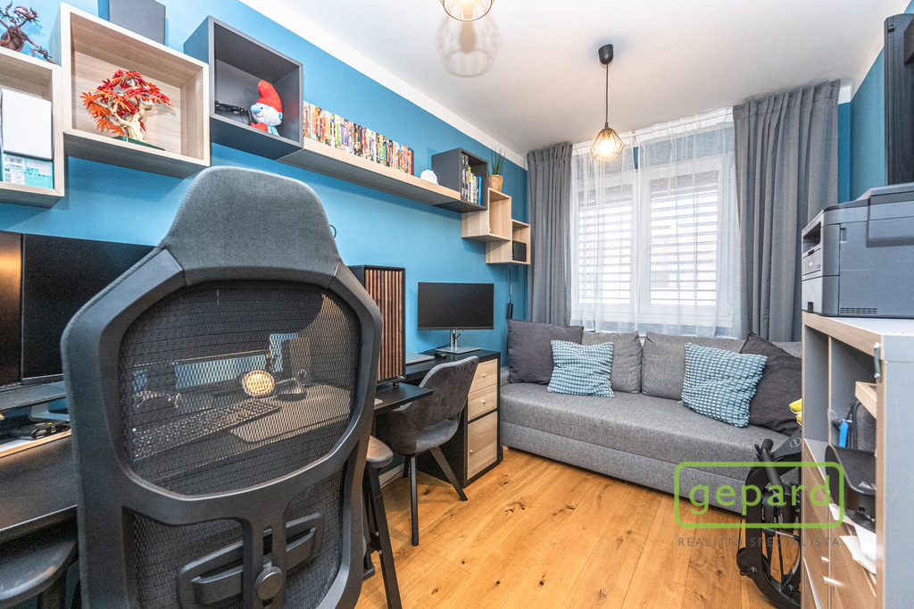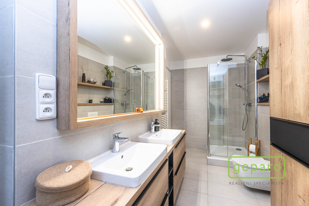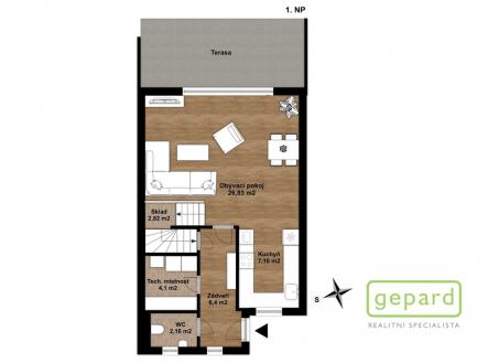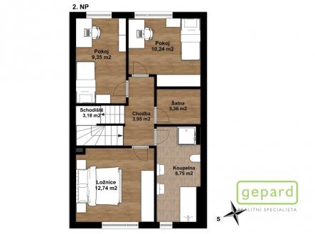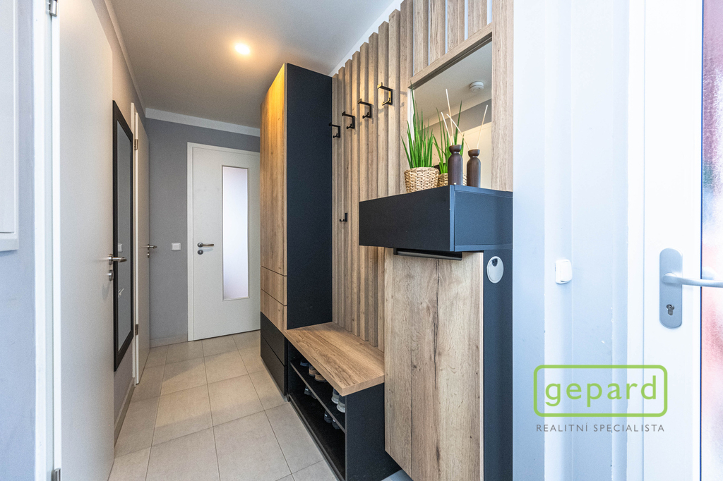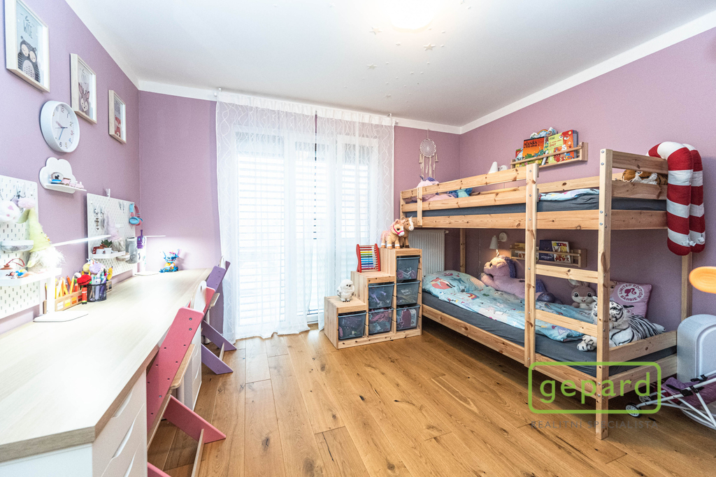 Realitní společnost Gepard nabízí prodej řadového, nadstandardně vybaveného rodinného domu s bazénem. Dvoupodlažní dům o ploše 101,4 m2 a dispozici 4+kk se nachází v klidné části obce Drahelčice, ulice Císařská. Jedná se o dvoupodlažní novostavbu z roku 2019. Celková plocha pozemku činí 199 m2, z toho zastavěná plocha domu činí 64,6 m2, zahrada 94 m2 a prostor na parkování před domem 40,4 m2. V přízemí je chodba (6,4 m2), prostorný obývací pokoj (26,83 m2) s kuchyní (7,16 m2) a se vstupem na zahradu a zastřešenou terasu. Kuchyně je kompletně vybavená spotřebiči (myčka, horkovzdušná trouba, mikrovlnná trouba, indukční varná deska, digestoř, kombinovaná lednice s mrazákem). Dál je v přízemí samostatné WC (2,16 m2), technická místnost (4,1 m2) s místem pro kotel, pračku a sušičku a úložný prostor pod schody (2,82 m2). V patře jsou 3 ložnice (12,74, 10,24 a 9,35 m2), koupelna s vanou i sprchovým koutem (8,75 m2) a šatna (3,36 m2). V podkroví je možné využít další úložný prostor. Před domem je místo pro parkování 2 automobilů. Dům je nabízen částečně zařízený, zůstává zde kuchyňská linka včetně spotřebičů a nábytek na míru dle dohody. Ve všech oknech jsou hliníkové předokenní rolety, v obytných místnostech a na schodišti je dubová dřevěná podlaha. Na zahradě byl v roce 2025 vybudován moderní bazén se zastřešením, slanou vodou, protiproudem, vyhříváním pomocí tepelného čerpadla a automatickou úpravnou vody. Současně byla rekonstruována terasa, je zde hliníková pergola s předním stíněním a podzemní nádrž na dešťovou vodu. Dům je vytápěný plynovým kondenzačním kotlem, je napojený na kanalizaci, vodu, plyn i elektřinu. K dispozici je internet vedený optikou. Dům je volný k nastěhování od 1.6.2026. Obec Drahelčice je vzdálená jen pár minut jízdy od Prahy. Je tak ideálním klidným místem obklopeným přírodou v těsném dosahu velkoměsta. Přímo v obci je mateřská školka i základní škola. Nejbližší obchody a další občanská vybavenost jsou v 3 km vzdálené obci Rudná. Majitel si vyhrazuje právo vybrat zájemce dle jím zvolených kritérií. Doporučujeme prohlídku.