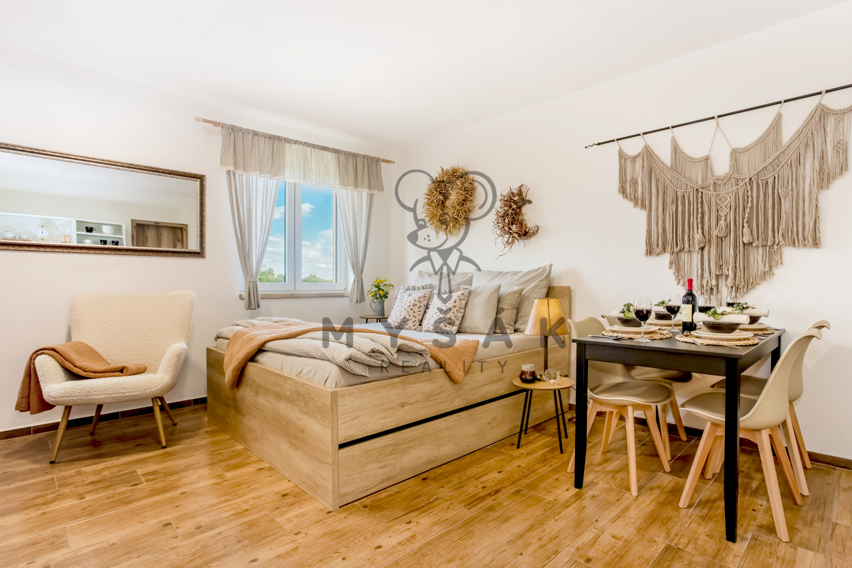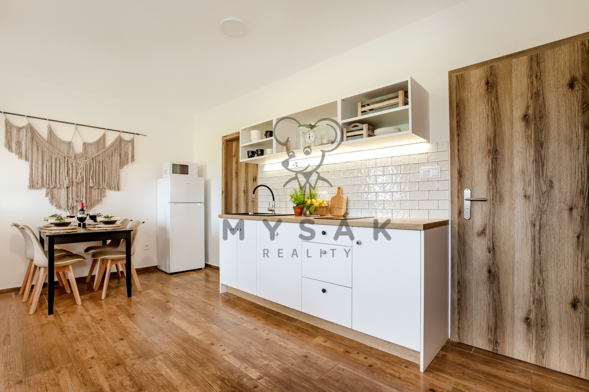 Zařízená garsoniéra s parkovacím místem v novostavbě domu v Drahotěšicích