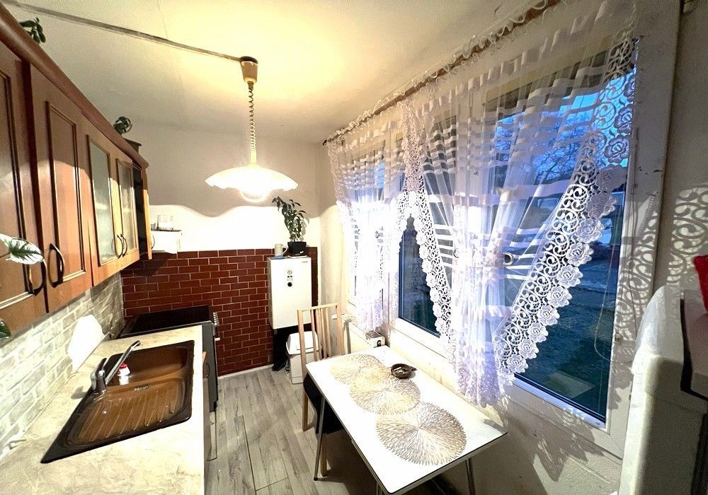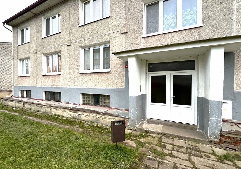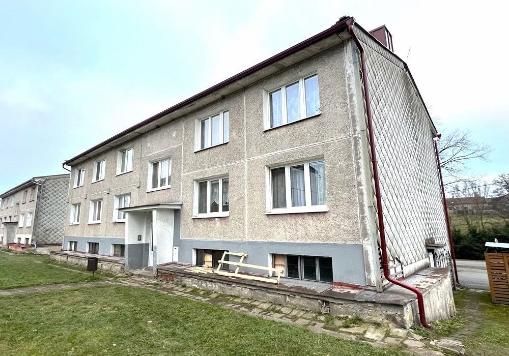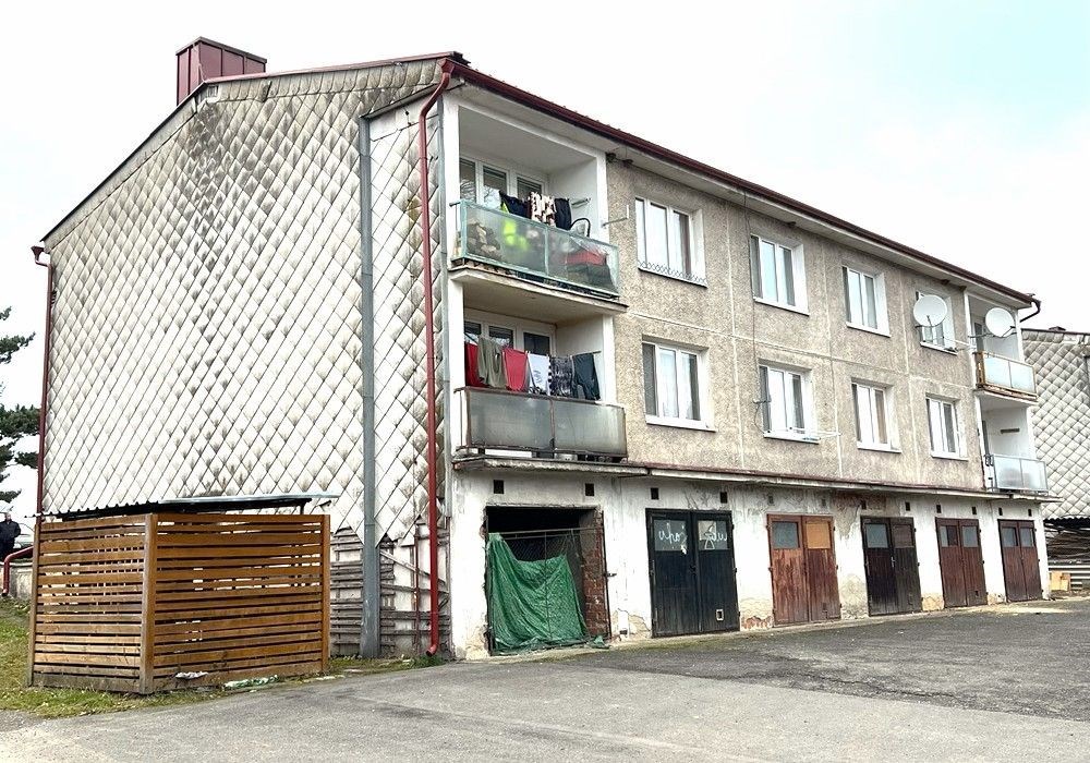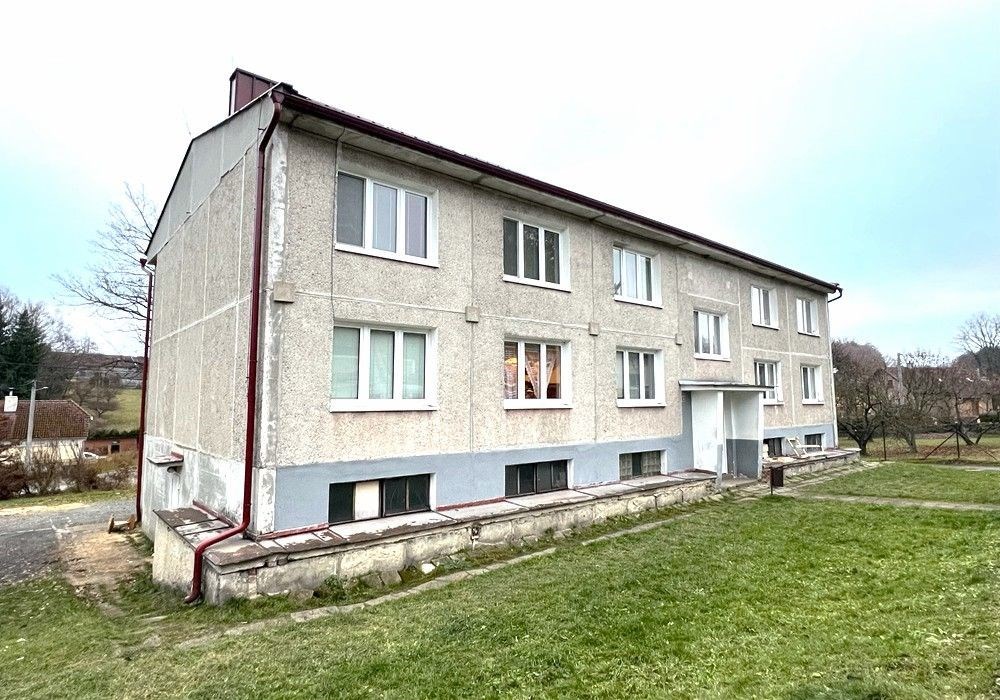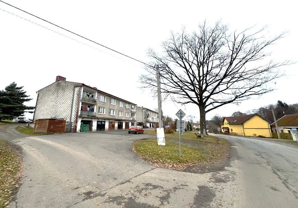 Byt o dispozici 3+1 (3x místnost + kuchyně) s lodžií, příslušenstvím, provozním vybavením a vlastní garáží, situovaný v 1.NP (zvýšené přízemí) bytového domu v klidné, zastavěné části obce. Byt s původním provozním vybavením o celkové výměře podlahové plochy s lodžií 68,5 m2 s externím příslušenstvím 82,80 m2, zbudovaný v bytovém domu s celkem šesti bytovými jednotkami, bez výtahu s vlastními skladovacími prostorami (sklep 1,7 m2) a vlastní vestavěnou garáží (nyní sklad 16,7 m2). K bytu náleží, možnost užívání všech společných prostor v bytovém domu (kolárna, prádelna, kotelna) a užívání obecního prostranství navazujícího na bytový dům. V letech 201517 byla provedena výměna oken za plastová s izolačními skly, rekonstrukce koupelny, částečná výměna elektroinstalace a instalace krbových kamen, jinak je byt v původním technickém stavu. Byt je připraven k okamžitému předání a užívání ihned po převodu nemovitosti, vhodný k zahájení rekonstrukce prostor dle představ nového vlastníka, bez jakéhokoli omezení vlastnických práv. Orientace oken v bytu na jihovýchod a severozápad. Bytový dům je dvoupodlažní objekt panelové konstrukce, navazující na okolní zástavbu bytových a rodinných vesnických domů s provedením renovace střešní části objektu, situován v obytné zástavbě klidné obce Drahotín se základní vybaveností, cca 4 km od střediskové obce Poběžovice se základní občanskou vybaveností, dostupností služeb a dopravní infrastrukturou. Třída ENB: „G“ průkaz nezpracován. Nabízený byt s příslušenstvím je využitelný k trvalému nebo nájemnímu bydlení v klidné obci v přírodní pohraniční lokalitě navazující na CHKO Český les. Dispozice: vstup, předsíň, obytná místnost s lodžií, kuchyně, 2x ložnice, koupelna (vana, umyvadlo), WC. Vybavení bytu: kuchyňská linka, sporák, koupelnové vybavení, zařizovací předměty, krbová kamna, osvětlovací tělesa, rozvody TV / tel. / internet. Vytápění: vlastní etážové elektrické (vlastní kotel) + lokální palivové (1x krbová kana). Celková užitná plocha bytu s příslušenstvím: 82,80 m2 byt s lodžií 68,50 m2 + sklep 1,7 m2 + garáž 16,7 m2.