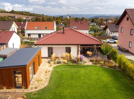 Hledáte domov, který nabízí prostor, klid, soukromí a pocit objetí přírody? Tento moderní bungalov je přesně tím místem, kde se zpomalil čas. Nachází se v obci Drnovice, v poklidné upravené ulici na kraji obce, v okresu Blansko. Na pozemku o rozloze 975 m² vznikl rodinný a útulný svět — dům decentního vzhledu, pečlivě upravený trávník, vzrostlá zeleň, trvalkové záhony, prostor pro hraní i terasa pro kávu na slunci. Děti tu mohou běhat, hrát si na písku, zatímco vy si užíváte odpočinek nebo pracujete venku. Nechybí ani samostatný zahradní objekt (29 m²) , ideální jako ateliér, posilovna, dětská herna či pokoj pro hosty. Na první pohled vás jednoznačně upoutá vzrostlá zahrada s pochozími chodníky, která podtrhuje krásu místa hned z ulice. Vstup do domu je orientován na východ. Tento zděný nepodsklepený dům s užitnou plochou 107m² je předdefinovaný jako 4+kk, kde dominantou domu je prostorný obývací prostor s jídelnou a kuchyní o ploše 44 m². Francouzské dveře rozšiřují komunikační zónu o krytou terasu se západní orientací. Skvělým benefitem je přímý výhled z kuchyně do zahrady, takže děti i návštěvy snadno obstaráte doslova mrknutím oka. Teplo domova vytváří nejenom jednotně sladěný interiér, ale taky krbová kamna, na které koukáte rovnou z pohovky. Vytápění celého domu je dále zajištěno podlahovým topením. Dispozice domu je do detailu dobře promyšlená - celý interiér působí vzdušně, prakticky a přitom nabízí dostatek úložných prostor pro rodinu i aktivní páry. Tento pěkný dům nabízí pohodlné, bezbariérové a klidné bydlení s vysokým důrazem na soukromí, zeleň a kvalitní každodenní život. Do Brna dojedete pohodlně autem přibližně za 30 minut - přijatelný kompromis mezi pracovním tempem ve městě a klidným životem na menší obci. V Drnovicích se nachází škola i školka, devítiletá škola je pak v blízkých Lysicích, kam jezdí školní autobus.