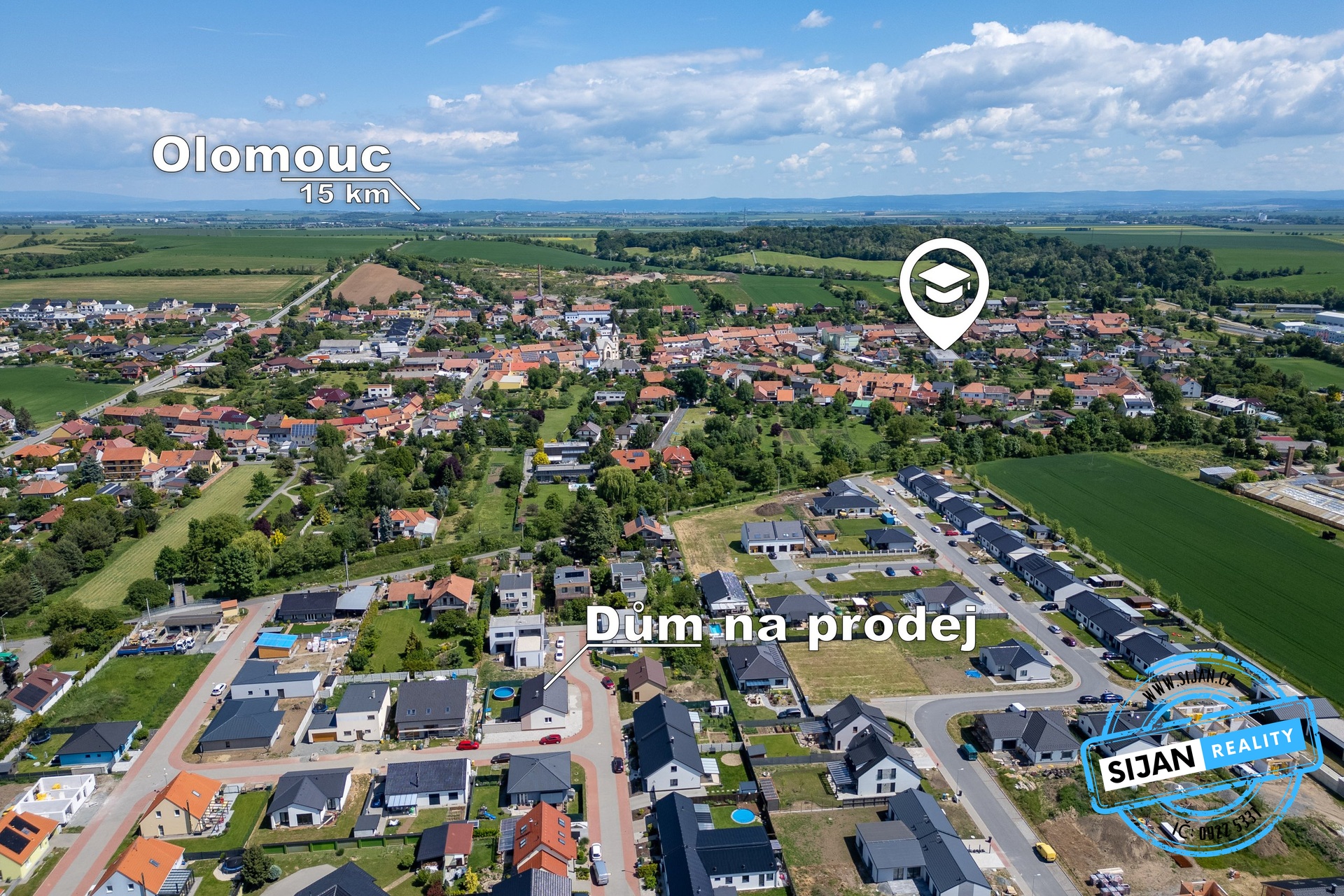 Moderní rodinný dům 4+kk s garáží, bazénem a zahradou – Držovice u Prostějova Hledáte moderní bydlení, kde se můžete ihned nastěhovat a užívat si komfortu bez dalších investic? Tento rodinný dům o dispozici 4+kk v klidné části Držovic, zkolaudovaný v roce 2021, je nyní k dispozici. Dům je postaven z kvalitního zdiva Ytong se silným zateplením a plastovými trojskly, což zaručuje nízké provozní náklady. Vytápění je řešeno teplovodním podlahovým topením napojeným na elektrokotel, takže si můžete užívat příjemné teplo domova po celý rok. K dispozici je i zásobník na teplou vodu a optický internet. Co vás uvnitř čeká? Srdcem domu je prostorný obývací pokoj s jídelnou a moderní kuchyní Oresi, odkud je přímý vstup na zastřešenou terasu. Tři neprůchozí pokoje zajistí soukromí každému členovi rodiny. Koupelna je vybavená jak vanou, tak sprchovým koutem, WC je samostatné. Praktická chodba a technická místnost usnadní každodenní provoz domácnosti. A venku? Na udržované zahradě si užijete soukromí i relax – k dispozici je bazén o objemu 20 m³, vyhřívaný tepelným čerpadlem umístěným v garáži. Prostorná terasa s pergolou vybízí k letnímu posezení a rodinným grilovačkám. Samozřejmostí je garáž (32 m²) s elektrickými vraty na dálkové ovládání. Tento dům je ideální pro rodiny, které hledají moderní, úsporné a pohodlné bydlení v blízkosti Prostějova, ale zároveň chtějí klid a soukromí. Zavolejte si o prohlídku – rádi vám dům ukážeme osobně!