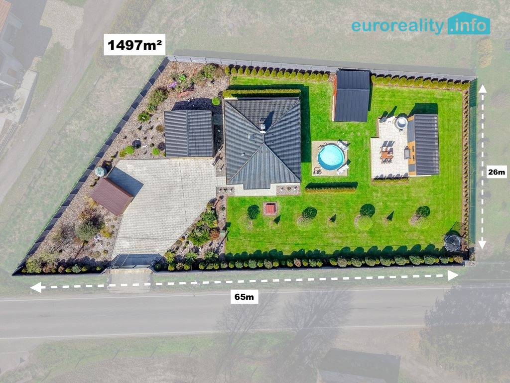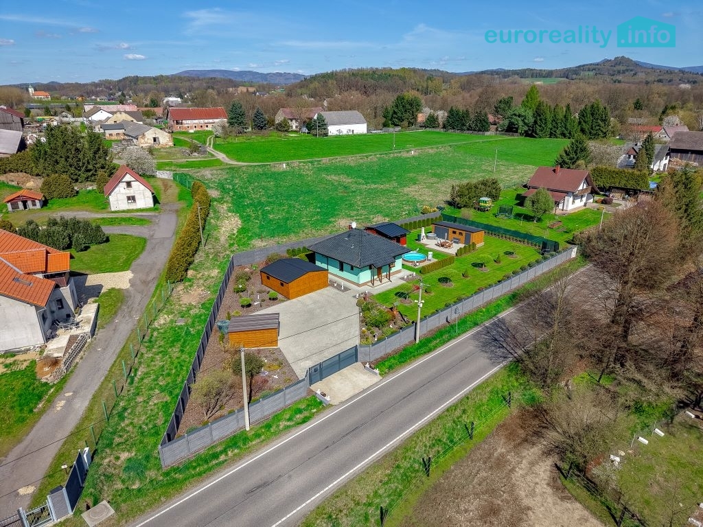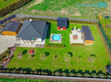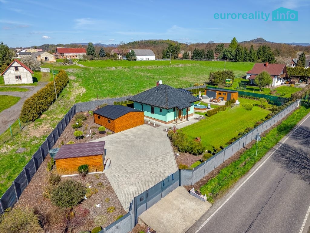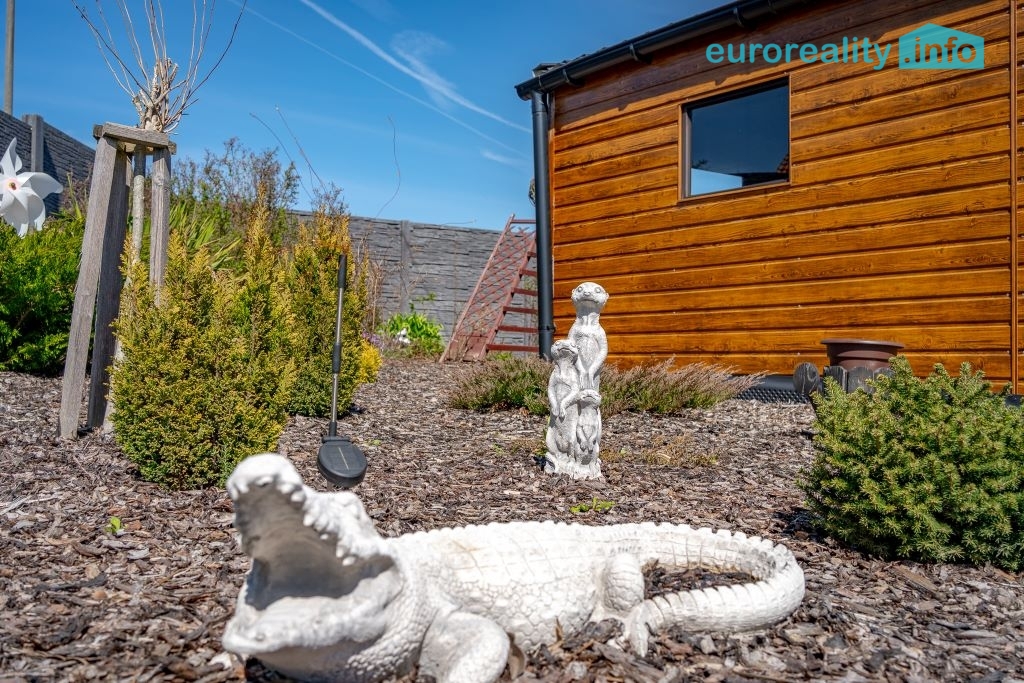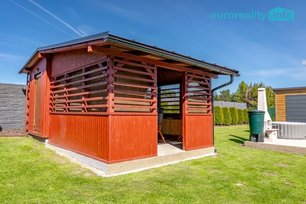 Prodej rodinného domu se zahradou a investičním potenciálem – Dubnice u Stráž pod Ralskem, okres Česká Lípa Nabízíme k prodeji moderní rodinný dům v klidné obci Dubnice, pouhý 1 km od Stráže pod Ralskem. Tato lokalita je ideální pro klienty, kteří hledají kombinaci soukromí, přírody a zároveň dobrou dostupnost do města. Dům byl realizován v letech 2017–2024 s důrazem na kvalitu provedení a energetickou úspornost. Kolaudace proběhla v září 2025. Jedná se o pasivní dřevostavbu s energetickou třídou B, která zajišťuje nízké provozní náklady a komfortní bydlení po celý rok. Zastavěná plocha domu činí 73 m², podlahová plocha 60 m². Dispozice je řešena účelně a prakticky s důrazem na maximální využití prostoru. Dům je zateplen, vybaven venkovními roletami a sítěmi proti hmyzu. Vytápění zajišťuje elektrické podlahové topení, které je doplněno krbovými kamny pro vytvoření příjemné atmosféry a zvýšení tepelného komfortu zejména v zimních měsících. Výhodou je také pochozí půdní prostor o velikosti cca 12 m², který slouží jako praktické úložiště. Inženýrské sítě jsou řešeny následovně: napojení na veřejný vodovod, odpad prostřednictvím domácí čističky odpadních vod (ČOV) a elektřina 220/380 V. Celková výměra pozemku činí 1 497 m². Pozemek je oplocen kvalitním betonovým plotem, který zajišťuje soukromí. Vjezd na pozemek je řešen ocelovou bránou. Zahrada je ve výborném stavu, pravidelně udržovaná a nabízí příjemné prostředí pro relaxaci i rodinné aktivity. Nachází se zde vzrostlé stromy, okrasné keře, mulčované plochy a chodníky ze zámkové dlažby. Pro odpočinek a volnočasové aktivity je k dispozici krytá pergola o velikosti 12 m² s nerezovou plynovou kuchyňkou, zapuštěný bazén, elektrická vířivka, trampolína a betonový venkovní gril. Tento prostor je ideální pro rodinná setkání, grilování i relaxaci v soukromí. Na pozemku se dále nachází několik vedlejších staveb, které výrazně zvyšují užitnou hodnotu nemovitosti: garáž pro dvě auta (36 m²) garáž pro zahradní techniku (13,5 m²) zahradní domek (24 m²) domek na nářadí s pergolou (19 m²) Zcela zásadní přidanou hodnotou je BONUS v podobě připravených základů s betonovou deskou o velikosti 65 m² pro výstavbu druhého rodinného domu. Aktuálně je tato plocha využívána jako terasa, nicméně nabízí reálnou možnost další výstavby – například pro vícegenerační bydlení. Velkou výhodou je, že součástí kupní ceny je kompletní vybavení nemovitosti. Interiér domu zůstává plně zařízen, stejně tak venkovní vybavení včetně zahradního nábytku, bazénového příslušenství, nářadí a techniky. Nový majitel tak může nemovitost okamžitě bez dalších investic užívat. Nemovitost představuje ideální volbu jak pro vlastní bydlení, tak i jako investici s dalším potenciálem. Kombinace pasivního domu, velkorysého pozemku, kompletního zázemí a možnosti výstavby druhého domu je na trhu spíše výjimečná. Doporučuji osobní prohlídku, kde nejlépe oceníte kvalitu provedení, atmosféru místa a celkový potenciál této nabídky.