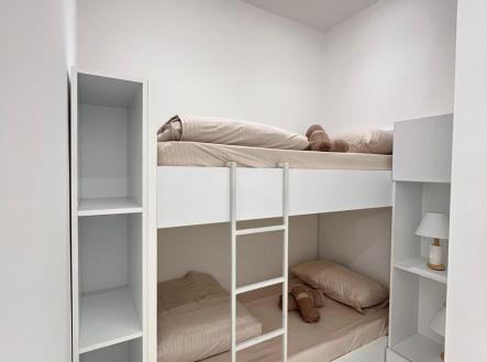 Nové rekonstruovaný apartmán 3+kk je umístěn je přímo u moře v přízemí bytového domu se samostatným vstupem, což zajišťuje snadný přístup. Apartmán je navržen s důrazem na pohodlí a moderní životní styl. Přes balkón je vstup prostorného obývacího pokoje, který je dokonale propojen s plně vybavenou kuchyňskou linkou. Z obývacího pokoje je vstup do obou ložnic, přičemž jedna je vybavena manželskou postelí a druhá samostatnými patrovými postelemi - palandou. Koupelna je vybavena moderním sprchovým koutem, umyvadlem s toaletní skříní a WC s bidetovou sprchou, což dodává apartmánu další úroveň komfortu. Lokalita je ideální pro ty, kteří hledají klidný odpočinek u moře, ale zároveň chtějí být blízko všem potřebným službám a zábavě, kterou město nabízí.