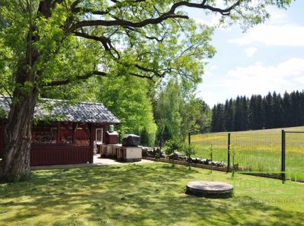 Nabízíme ve výhradním zastoupení exkluzivní nemovitost na samotě nedaleko Prachatic (Husince) v překrásném přírodě. Dům (chalupa) je vhodný nejen k sezonní rekreaci díky klidu samoty a úžasné přírody, ale vzhledem ke komfortnímu vybavení a technickému zázemí také k celoročnímu bydlení. Nemovitost je kompletně zrekonstruována a stavebně osazena kvalitními materiály včetně veškerého vybavení novými technologiemi a nábytkem na míru. V přízemí domu je velká obývací místnost s kuchyní, jídelním koutem, ložnicí, koupelnou a garáží. Podkrovní část se dřevěným schodištěm má celkem 3 ložnice s balkonem a prostornou terasou. Na udržované zahradě se dvěma rybníky s průtočnou vodou se nachází dřevěný domek pro další ubytování, které se nyní využívá jako dílna se skladovacím prostorem, zastřešená pergola s grilovacím pultem, grilem a udírnou. Nemovitost je napojena na 230/400 V, vlastní vrt 38 metrů, vytápění je řešeno krbovou vložkou s teplovzdušnými rozvody nebo elektrokotlem s podlahovým vytápěním. Celý objekt je stylově oplocen s pojezdovou branou a zabezpečen alarmem s kamerovým systémem. Součástí prodeje je velká louka o výměře 4803 m2 a lesní pozemek 360 m2 v těsné blízkosti nabízené nemovitosti. Prohlídka dle domluvy s makléřem. Financování zajistíme.
