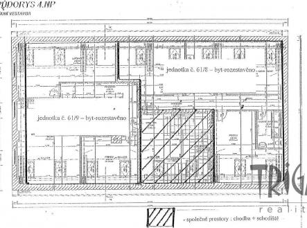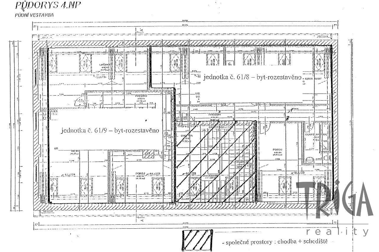 Nabízíme Vám ke koupi velmi zajímavý půdní prostor, rozdělený na dvě rozestavěné bytové jednotky č. 61/8 a 61/9, každou o dispozici 3+kk, v osobním vlastnictví. Celková výměra jednotky č. 61/8 činí 128,2 m² a jednotky č. 61/9 je 129,8 m². Prostor se nachází v centru Dvora Králové nad Labem, přímo na pěší zóně u náměstí. Jedná se o 4. nadzemní podlaží staršího bytového domu bez výtahu, který prošel kompletní rekonstrukcí společných prostor, se zachováním původních architektonických prvků a s novou vstupní bránou. Dům je napojen na dálkové vytápění, kanalizaci, veřejný vodovod a elektřinu. Ke každé bytové jednotce náleží sklep o výměře cca 15 m². K dispozici jsou dvě projektové dokumentace. První odpovídá současnému stavu se dvěma rozestavěnými bytovými jednotkami, druhá dokumentace řeší rozdělení půdního prostoru na čtyři menší bytové jednotky. Ke každé z variant bylo vydáno stavební povolení – v roce 2011 pro dvě bytové jednotky a v roce 2023 pro čtyři bytové jednotky. Jedná se o velmi lukrativní nabídku, ideální jako investiční příležitost. Další podrobné informace Vám rádi poskytneme v naší královédvorské kanceláři. Zak. č.: DK22605S PENB: G