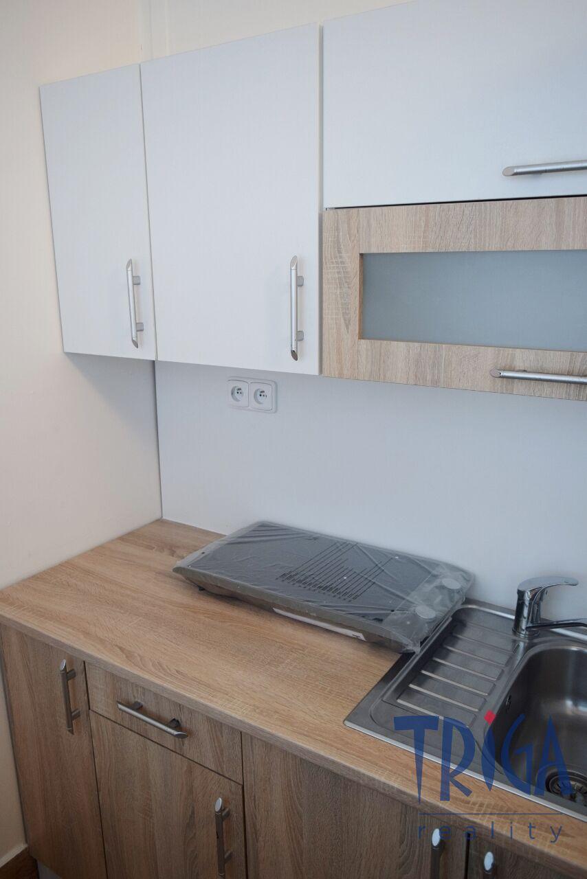 Nabízíme k dlouhodobému pronájmu menší, slunný byt 1+kk o celkové výměře 27,2 m² (včetně sklepa), situovaný v 6. nadzemním podlaží panelového domu ve Dvoře Králové nad Labem, v klidné lokalitě nedaleko koupaliště. Byt je v osobním vlastnictví, po rekonstrukci z roku 2023 – má nová plastová okna se žaluziemi a je čerstvě vymalován. Dispozice: předsíň s vestavěnou skříní, koupelna se sprchovým koutem a odděleným WC, prostorný obytný pokoj, kuchyňský kout s novou linkou a indukčním vařičem. Podlahy: v kuchyni a předsíni dlažba, v pokoji plovoucí podlaha. Dům je po kompletní revitalizaci – nové vchodové dveře, schránky, výtah a velmi dobře udržované společné prostory. K bytu náleží zděný sklep, k dispozici je také společná kolárna a sušárna. Parkování je možné přímo u domu. Nájemné a podmínky: Byt je k dispozici od 1. 2. 2026 (nebo dle dohody). Vratná jistota (kauce): 16.000 Kč. Zak. č.: DK22603S Energetická náročnost budovy: C Doporučujeme osobní prohlídku.