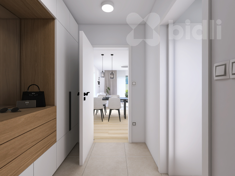 Nabízíme k prodeji moderní bytovou jednotku o dispozici 3+kk a podlahové ploše 85,5 m2, která se sestává z 1 nadzemního podlaží a podkroví komorního t rojdomu v rámci developerského projektu v obci Dýšina. Jedná o úsporné bydlení, kdy má každý byt svou vlastní FVE a k vytápění a chlazení může použít tepelné čerpadlo vzduch-vzduch. Díky těmto technologiím se dá spořit na nákladech. Součástí bytu je soukromá zahrádka o výměře 114 m2 ve výlučném užívání, která poskytuje ideální prostor pro relaxaci, rodinné posezení, dětské hry či zahradničení. K jednotce náleží také 2 parkovací místa, zajišťující maximální komfort pro Vás i Vaši návštěvu. Dispoziční řešení bytu nabízí praktické a vzdušné uspořádání s důrazem na dostatek denního světla a propojení obytné části se zahradou. Mezonetové řešení přirozeně odděluje denní a klidovou zónu a přispívá k příjemné atmosféře rodinného bydlení. Lokalita, která má co nabídnout. Byt se nachází v klidné a vyhledávané lokalitě obce Dýšina v těsné blízkosti Plzně. Tato poloha spojuje výhody venkovského bydlení s výbornou dostupností města. Obec Dýšina je vzdálena pouhých cca 8 km od Plzně, díky čemuž nabízí klidné a bezpečné prostředí s rychlou dostupností kompletní občanské vybavenosti. Přímo v obci naleznete mateřskou i základní školu, obchod, poštu, knihovnu, sportoviště i další služby pro pohodlný každodenní život. Samozřejmostí je také dopravní dostupnost - spojení do Plzně je možné autem i autobusovou dopravou, přičemž zastávka se nachází v docházkové vzdálenosti od projektu. Lokalita tak představuje ideální volbu pro rodiny i jednotlivce, kteří hledají klidné bydlení v zeleni, ale nechtějí se vzdát výhod města na dosah. Pro více informací či domluvení prohlídky nás neváhejte kontaktovat.