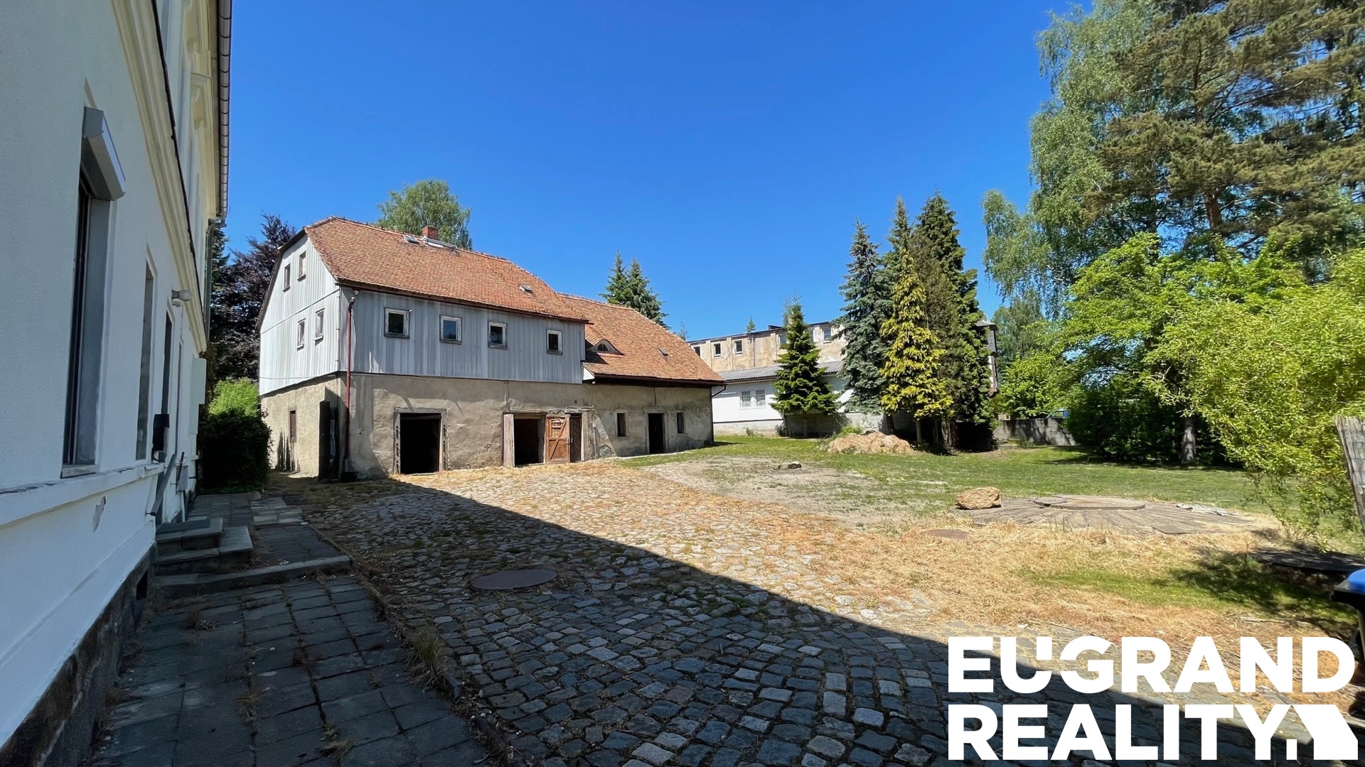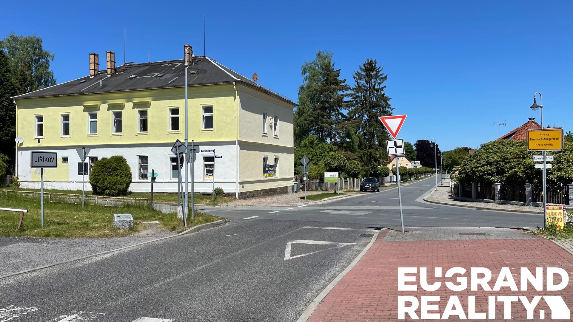 Exkluzivně nabízíme k prodeji dva domy na společném pozemku v Ebersbachu / hraniční přechod Jiříkov, přímo na státní hranici. V hlavní budově jsou tři prostorné byty, 2x 3 + 1 v přízemí byt 2 + 1 s možností vybudování dalších 3 bytových jednotek. Druhý dům sloužil jako hospodářská budova, ve spodní části jsou stáje, v prvním patře je umístěna jedna bytová jednotka. K domům patří velký pozemek s dvojicí garáží v zadní části pozemku o rozloze 2640 m2. Přístup k nemovitosti je z místní komunikace. Dům je podsklepený, obvodové zdivo je smíšené. Dům je napojen na městskou vodu a kanalizaci, plus vlastní nevyužívaná studna. Vytápění domu je lokální na tuhá paliva plus přímotopy. Střecha sedlová, krytina šindel, u druhé budovy pálená taška. Hlavní budova je celkově ve velmi slušném technickém stavu s možností dokončení dalších bytových jednotek nebo komerčních prostor v přízemí, + půdní vestavba.