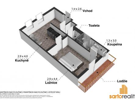 Máte vysoké požadavky na bydlení, takže chcete bydlet v pěkném moderním bytě, ale současně byste rádi bydleli v domě, obklopeném přírodou, se zahradou a vlastním parkováním? V tom případě zpozorněte. Troufám si totiž tvrdit, že tato nabídka je naprosto unikátní. V zastoupení klienta si Vám dovoluji nabídnout k pronájmu krásný a kompletně zrekonstruovaný byt 2+kk, který se nachází jen 15 minut od Děčína, ve Františkově nad Ploučnicí. Tento byt o velikosti 41 m2, je situovaný do 1.NP kompletně a nově zrekonstruovaného bytového domu. Skládá se ze vstupní předsíně, kuchyně, ložnice, prostorné koupelny se sprchovým koutem, samostatného WC a velké prostorné lodžie, orientované do klidové části za domem. Byt je aktuálně těsně po dokončení kompletní a nákladné rekonstrukce a vše je tak nové a bez předchozího užívání. Kromě kvalitního provedení v moderním a svěžím designu, kladl majitel také zřetel i na celkovou kvalitu bydlení. Ke každému bytu tak náleží jedno vlastní parkovací stání, sklepní kóje a hlavně možnost využívat velkou zahradu vedle domu. To znamená mnohonásobně lepší komfort bydlení, blížící se téměř bydlení v rodinném domě. Zahrada navíc těsně přiléhá k řece Ploučnici, což tomuto místu dává ještě větší atmosféru. Tady prostě chcete bydlet. Františkov je vzdálený pouhé 3min. od Benešova nad Ploučnicí, kde najdete veškerou občanskou vybavenost. A dále 15min. od Děčína. Nicméně zastávka autobusu je jen 100m od domu, potraviny 400m, vlakové nádraží 10min. pěšky nebo třeba dětské hřiště a další. Kromě toho je nedaleko hranic s Německem a tak vhodný např. i pro "pendlery" pracující v DE. Kromě toho přímo z domu koukáte nejen na řeku, ale i třeba zříceninu Hradu Ostrý. Měsíční nájemné činí 9.600,-Kč, k tomu je nutné započíst zálohy na služby a energie - cca 3.400,-Kč (voda, topení, el.energie, úklid spol.prostor), dle počtu osob. Vratná jistota nájmu 26.000,-Kč, realitní servis 10.000,-Kč. Byt je vhodný pro 1-2 osoby a je k dispozici okamžitě. Tento byt bych doporučil někomu, kdo chce bydlet jinak, než v panelovém bytě na sídlišti, chce bydlet na pěkném a klidném místě, obklopený přírodou. Tohle totiž není bydlení pro každého, ale může být třeba právě pro Vás. Pokud Vás tento byt zaujal, neváhejte mne kontaktovat.