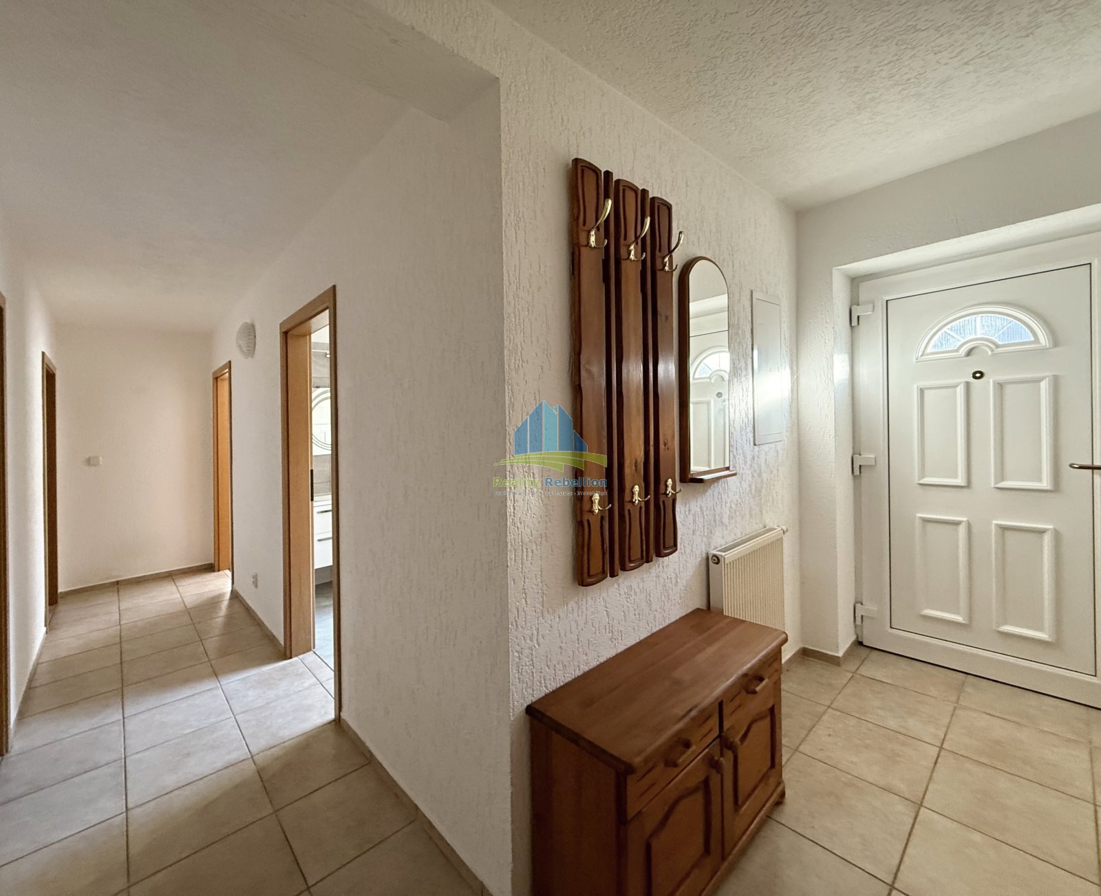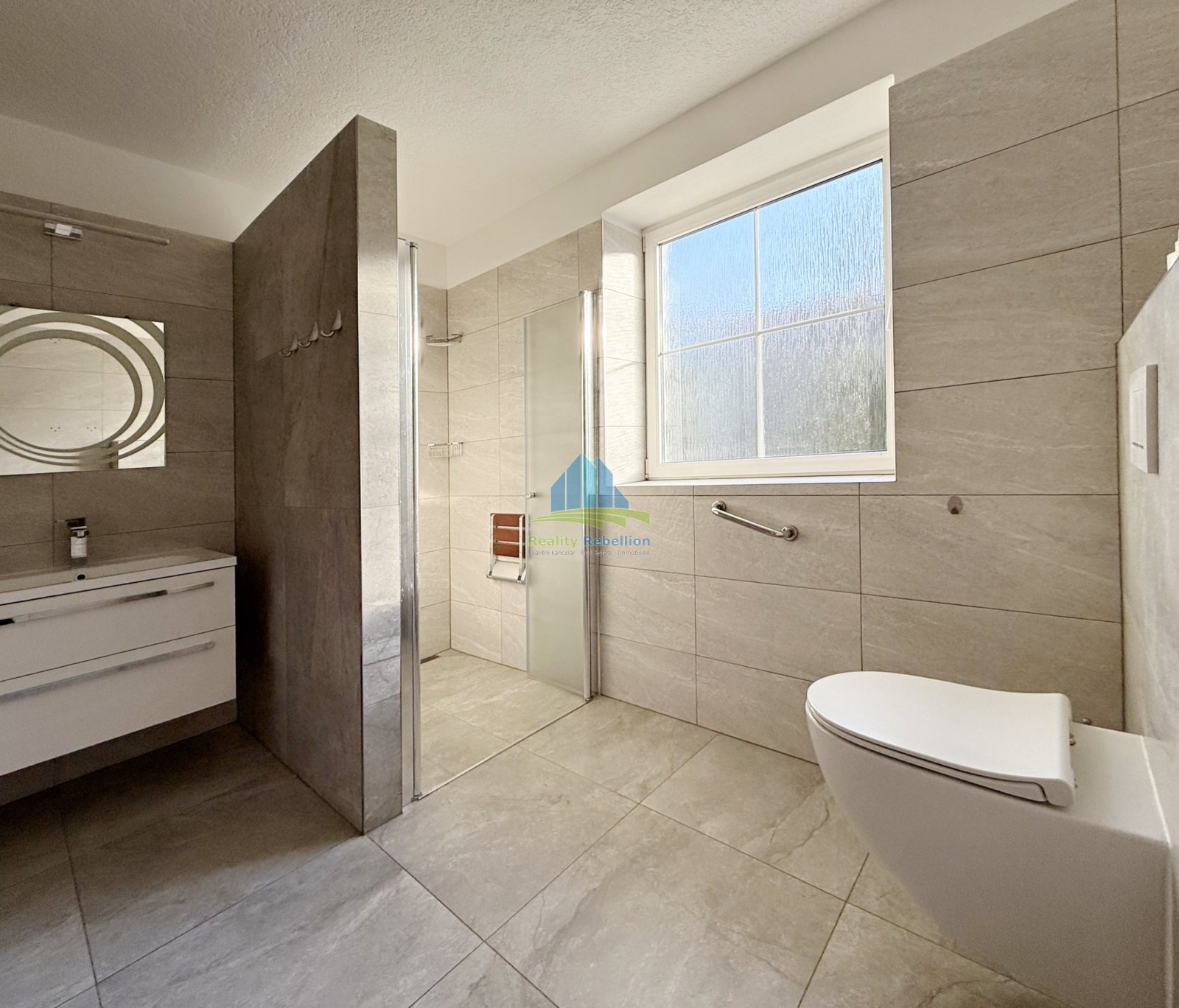 Jednopodlažní rodinný dům s dispozicí 4+1 a garáží pro 2 automobily se zastavěnou plochou 212m² a zahradou 912 m². Rodinný dům je přízemní (nepodsklepený), s hlavním vstupem do šatny, dále do technické místnosti, extra WC a obývacího pokoje. Na vstupní chodbu volně navazuje chodba se vstupy do dalších 3 pokojů a do koupelny se sprchovým koutem a WC. Hlavní dominantou obývacího pokoje je obytný prostor s krbem na dřevo a přímým vstupem na terasu. Z obývacího pokoje je také vstup do kuchyně, kde je na míru postavená kuchyňská linka – vybavení myčka nádobí, lednice, sklokeramická deska, el. trouba, digestoř… Intergrovaná garáž s vraty na dálkové ovládání s parkováním pro 2 automobily za sebou není s domem komunikačně propojena, ale je z ní vstup na krytou terasu, kam lze rovněž vstoupit z ložnice a obývacího pokoje. Z garáže lze po skládacích kovových schodech vystoupit do neupraveného podkrovního prostoru, kde lze vybudovat další bytovou jednotku nebo využít jako velkorysý úložný prostor. Kromě garáže je možno parkovat 3 automobily na vlastním pozemku a další před domem na veřejné komunikaci. Podlahy jsou kombinací dlažby a PVC. V předsíni a koupelně je tepelná podlahová smyčka. Topení je zajištěné jak plynovým kotlem – radiátory, tak krbem umístěným v obývacím pokoji. Na zdech mnichovská omítka. Okna jsou plastová se žaluziemi. Dům je postaven z POROTHERMU, izolace polystyren, stropy jsou s vložkami Miako. Krov je vázaný dřevěný valbový se stojatou stolicí, uspořádaný do věnce. Krytina betonová BRAMAC- alpská taška břidlicově černá. Komínové těleso SCHIEDEL se dvěma průduchy pro krb a plynový kotel. Do každé místnosti je svod internetu. Instalace Skylinku i Sauronu (satelity) jsou součástí prodeje. Na zahradě je zastřešená terasa, kde je položená venkovní dlažba. Nemovitost se nachází v klidné lokalitě Františkových Lázních s dobrou dopravní dostupností. Tento rodinný dům je ideální volbou pro ty, kteří hledají kombinaci, komfortu a klidného prostředí. Okolí je rovněž bohaté na krásnou přírodu a rekreační možnosti, a přesto zůstává pohodlně dostupné do nedalekého Chebu nebo Německa. Pro více informací nebo sjednání prohlídky nás neváhejte kontaktovat. Zdarma Vám zajistíme financování nemovitosti. Více na tel. 602961353. PENB E