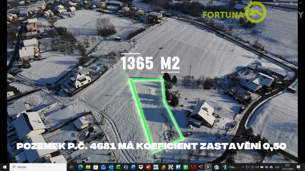 Prodej stavebního pozemku o výměře 1365 m2 a investičního pozemku o výměře 3980 m2