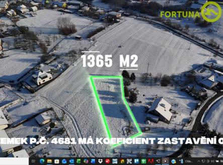 Nabízíme Vám prodej stavebního pozemku s unikátním výhledem o výměře 1365 m2 p.č. 4681 k.ú. Místek obce Frýdek-Místek. Pozemek je určen platným územním plánem jako BI - plocha pro bydlení individuální s koeficientem zastavění 0,5. Přístupovou cestu - účelovou komunikaci je možné zřídit na další nabízeném investičním pozemku p.č. 4683/5 o výměře 3980 m2, který je v současné době určen ÚP jako AU - plochy zemědělské všeobecné. Je možné požádat o změnu územního plánu a mimo ochranné pásmo VVN na BI.