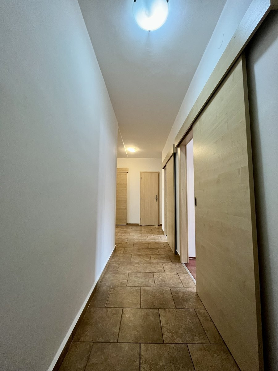 Pronájem bytu 3+1, 87 m², Frýdek-Místek K dlouhodobému pronájmu nabízíme krásný, moderně zrekonstruovaný byt 3+1 o celkové výměře 87 m², který se nachází ve 3. nadzemním podlaží šestipatrového domu. Byt disponuje prostornou chodbou s úložnými prostory a praktickým kumbálem, dále třemi neprůchozími pokoji, z nichž jeden má vstup na zasklený balkon. Kuchyně je vybavena kuchyňskou linkou se sporákem, troubou, digestoří a lednicí. Koupelna je prostorná, vybavená vanou a umyvadlem se skříňkou, toaleta je samostatná. Byt se nachází v klidné lokalitě. Parkování je možné před garáží majitele bytu. Výborná dopravní dostupnost – nájezd na rychlostní silnici D48 umožňuje rychlé spojení na Ostravu, Nový Jičín, Karvinou i Beskydy. Zastávka MHD Revoluční je přímo u domu. V blízkosti najdete: restaurace a bistra (Grill Station – Střelnice, Pizzerie Best, Krčma Středověk, Radegastovna – Tankovna FM, Benu Restaurant, Etno, Hung’s Asian Restaurant aj.) benzinové stanice s nonstop provozem dětská hřiště, workoutové hřiště, dopravní hřiště Arboretum Frýdek-Místek, Stadion Stovky, basketpoint přírodu pro procházky – řeka Ostravice, Panský potok, Podšajarka Ve městě je kompletní občanská vybavenost – školy, školky, zdravotní zařízení, obchody, lékárny i banky. Podmínky pronájmu Nájemné: 16 900 Kč / měsíc Služby včetně energií a pojištění: 4 589 Kč / měsíc Vratnou kauci je možné uhradit ve dvou splátkách Domácí mazlíčci po dohodě s majitelem. Byt je připraven ihned k nastěhování Pokud hledáte klidné a prostorné bydlení s výbornou dostupností a veškerými službami na dosah, tento byt je ideální volbou.