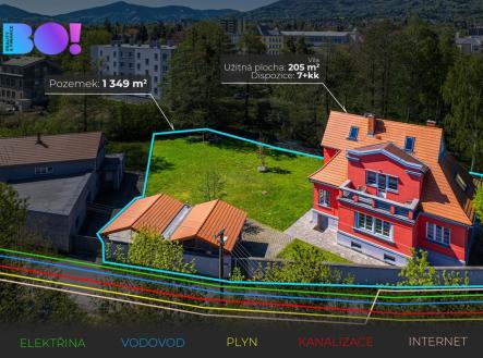 Nabízíme Vám k prodeji exkluzivní rodinný dům se stavebním pozemkem v srdci Frýdlantu nad Ostravicí na ulici Emila Pajurka s proslulou historií. Dům se nachází v samém centru města a svou prostornou dispozicí 7+kk s užitnou plochou 205,38 m² a se stavebním pozemkem nabízí velkorysé prostory pro pohodlné a klidné bydlení. Možné využití: - bydlení pro vícegenerační rodinu - sídlo firmy či podnikání spojené s bydlením - vybudování ordinací Dispoziční řešení prvního podlaží (104,26 m²): vstupní hala, samostatné wc, kouzelný otevřený prostor, kde se snoubí elegantní kuchyně s ostrůvkem, útulná jídelna a prostorný obývací pokoj s krbem – ideální místo pro společné chvíle s rodinou i přáteli. Ke komfortu přispívají dva světlé pokoje s koupelnou a odděleným WC. Tady se budete cítit opravdu jako doma! Druhé podlaží (101,12 m²): Vstupní hala vás zavede do světlého pokoje s nádhernou terasou, odkud si můžete vychutnat relaxaci a úchvatný výhled na Lysou horu. Dále se zde nachází ložnice se šatnou, koupelna s vanou a samostatné WC. K útulné atmosféře přispívá také prostorný a prosvětlený kout se vstupem do podkroví. Třetí podlaží: V podkrovním prostoru si můžete vytvořit klidnou ložnici, inspirativní pracovnu, dětskou zábavnou hernu nebo relaxační místnost, kde si vychutnáte chvíle odpočinku. Díky své variabilitě se podkroví snadno přizpůsobí vašim potřebám. Sklep o rozloze 87,30 m² nabízí mimořádné možnosti využití. Je zde umístěna sauna, vana na ochlazení a prostor, který lze přeměnit například na domácí posilovnu, vinotéku nebo skladovací místnost. Sklepní prostory poskytují flexibilitu pro další úpravy podle přání nového majitele. Dům se nachází na pozemku o celkové rozloze 1349 m² včetně stavebního pozemku. Plocha nabízí dostatek prostoru pro odpočinek i aktivní vyžití. Můžete si zde vytvořit krásnou zahradu, vybudovat venkovní posezení, užívat si chvíle pohody pod pergolou nebo si s dětmi hrát na čerstvém vzduchu. Pozemek zároveň poskytuje možnost vybudování bazénu či menšího hřiště, které ještě více podtrhne jedinečnou atmosféru tohoto místa. Je to ideální místo, kde si můžete vychutnat klidné prostředí, a přitom zůstat v dosahu všech služeb a občanské vybavenosti města. Díky této přidané hodnotě se jedná o velmi lukrativní nabídku, která nejen zvyšuje potenciál využití, ale také výrazně zhodnocuje celkovou hodnotu nemovitosti. Pro lepší představu jsme připravili vizualizace běžného rodinného domu – najdete je ve fotkách. Neváhejte a využijte tuto jedinečnou příležitost vlastnit tuto nemovitost v prestižní lokalitě centra města. BO! spolu tvoříme příběhy..