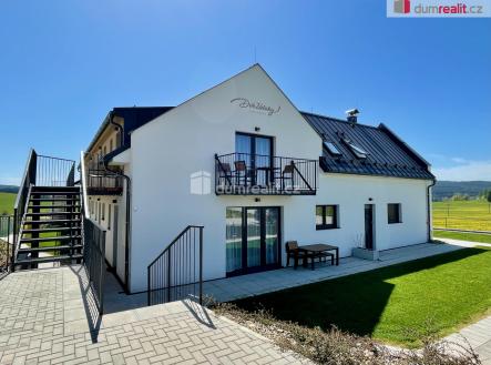 K prodeji, apartmán/byt 1+kk s terasou, v osobním vlastnictví, Kovářov-Frymburk, u vodní nádrže Lipn