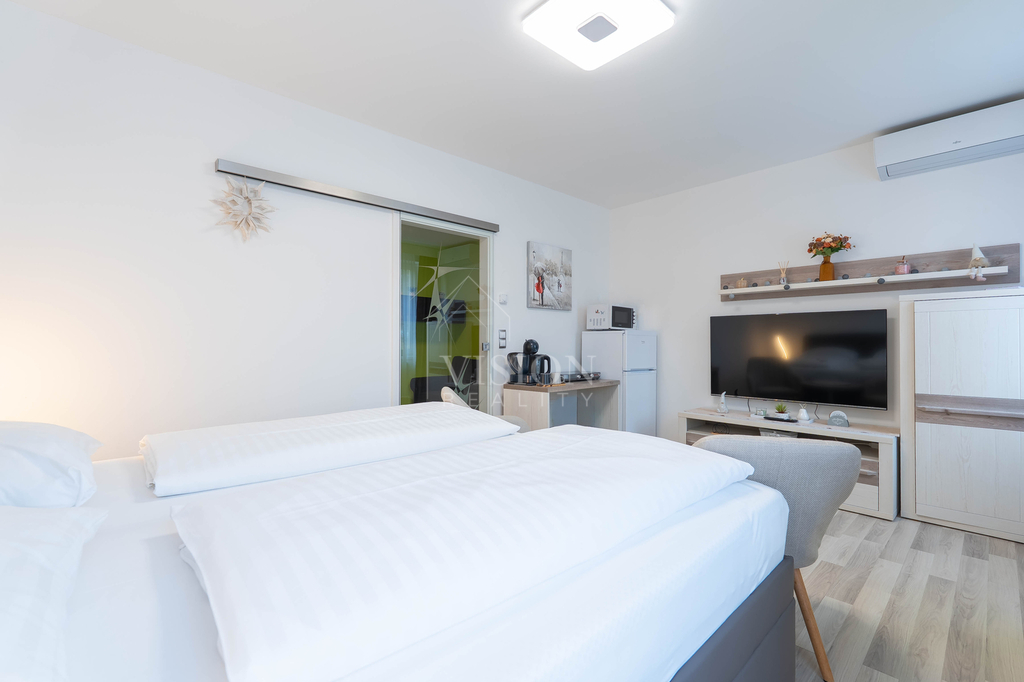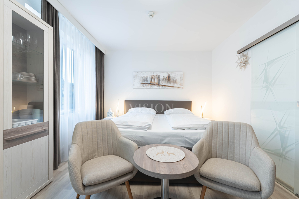 Nabízíme k prodeji moderně vybavený apartmán o velikosti 32 m² nacházející se ve wellness hotelu Frymburk. Apartmán je v perfektním stavu a je plně zařízený, přičemž veškeré vybavení zůstává součástí prodeje, což umožňuje okamžité využití bez nutnosti dalších investic. Jednotka je navržena s ohledem na komfort a praktické využití prostoru. Díky své dispozici a vybavení je vhodná jak pro vlastní rekreaci, tak na pronajímání. To z apartmánu činí zajímavou investiční příležitost, protože hotel poskytuje kompletní zázemí a služby, které zajišťují pohodlí a komfort pro hosty. Mezi benefity patří wellness, restaurace, sportovní a volnočasové aktivity a především výborná dostupnost k Lipenské přehradě a dalším turisticky atraktivním místům v regionu. Pro majitele je apartmán ideální jako místo pro odpočinek a rekreaci bez starostí o vybavení či zařízení, zároveň nabízí možnost generovat výnosy pronájmem. Hotelová a externí správcovská firma zajišťuje provoz a péči o jednotku, což usnadňuje případný pronájem a minimalizuje starosti s údržbou. Tento apartmán je skvělou volbou pro zájemce hledající komfortní, moderní a připravené rekreační bydlení v atraktivní lokalitě na Lipně s možností dalšího výnosu. Pro více informací nebo sjednání prohlídky nás neváhejte kontaktovat.