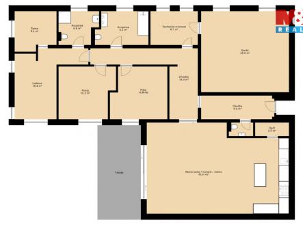 Toužíte po bydlení na výjimečném místě, kde se snoubí komfort, příroda a klid? Pak vás nadchne tento nadstandardní bungalov o dispozici 4+KK s dvojgaráží, užitnou plochou 216 m² a krásným rovinatým pozemkem o rozloze 1018 m², který se nachází v nové rezidenční čtvrti Frymburk - Blatenská, jen 800 metrů od centra a břehu Lipenské přehrady. Frymburk, nově vyhlášený přírodními léčebnými lázněmi, nabízí skvělou kombinaci celoroční rekreace a plnohodnotného zázemí pro rodinný život. Bungalov je navržen s důrazem na maximální pohodlí – prostorný obývací pokoj s kuchyní a jídelnou plynule navazuje na krytou terasu a zahradu. Kuchyň má praktickou spíž. V klidové části najdete tři ložnice, šatnu a dvě koupelny. Obě koupelny jsou dokončeny v luxusním standardu – obklady a dlažby Porcelanosa, podomítkové baterie Grohe Essence. Každý pokoj má přímý vstup do zahrady. Součástí domu je i technická místnost s vlastním vstupem do garáže.. Výhodou tohoto domu je možnost dokončení dle svých představ.