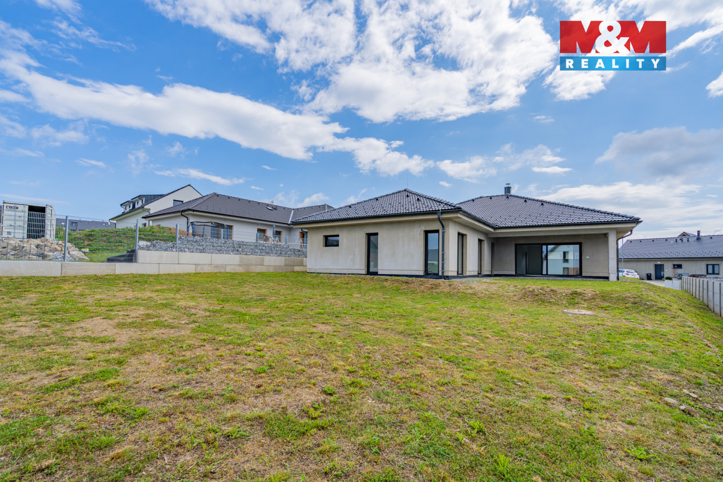 Toužíte po bydlení na výjimečném místě, kde se snoubí komfort, příroda a klid? Pak vás nadchne tento nadstandardní bungalov o dispozici 4+kk s dvojgaráží, užitnou plochou 216 m² a krásným rovinatým pozemkem o rozloze 1018 m², který se nachází v nové rezidenční čtvrti Frymburk - Blatenská, jen 800 metrů od centra a břehu Lipenské přehrady. Frymburk, nově vyhlášený přírodními léčebnými lázněmi, nabízí skvělou kombinaci celoroční rekreace a plnohodnotného zázemí pro rodinný život. Bungalov je navržen s důrazem na maximální pohodlí – prostorný obývací pokoj s kuchyní a jídelnou plynule navazuje na krytou terasu a zahradu. Kuchyň má praktickou spíž. V klidové části najdete tři ložnice, šatnu a dvě koupelny. Obě koupelny jsou dokončeny v luxusním standardu – obklady a dlažby Porcelanosa, podomítkové baterie Grohe Essence. Každý pokoj má přímý vstup do zahrady. Součástí domu je i technická místnost s vlastním vstupem do garáže.. Výhodou tohoto domu je možnost dokončení dle svých představ.